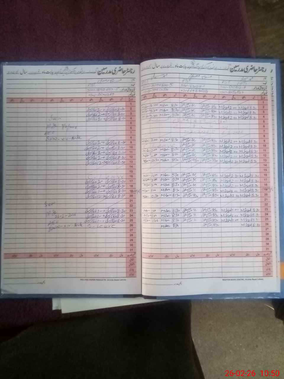 | CNIC | Full Name | Designation | R/C | Absence During Last Calender Month |