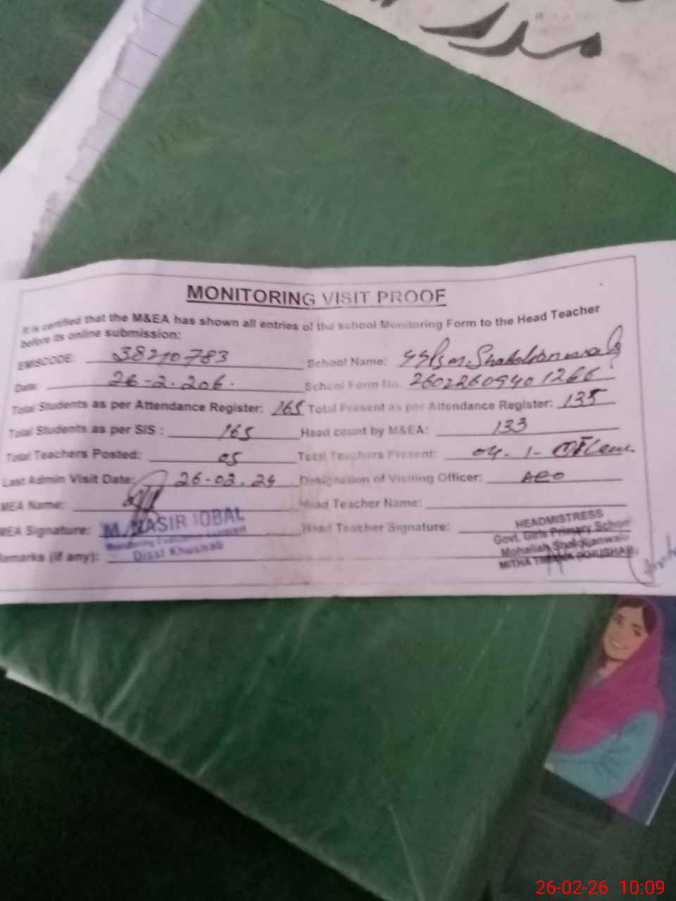 | EMIS Code: 38210783 | Name of School: GGPS MOHALLAH SHALOLIAN WALA | |||