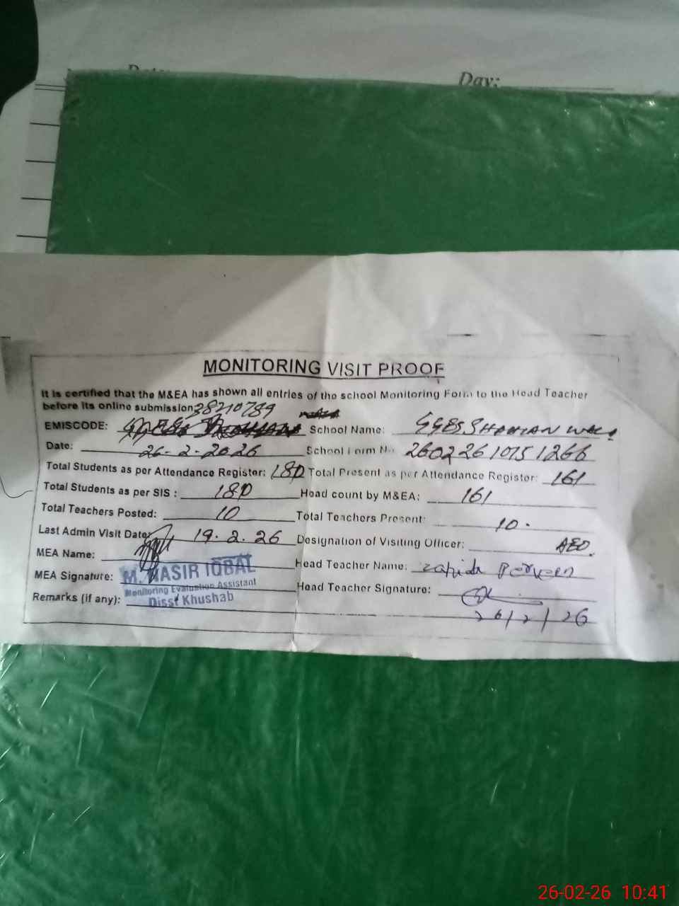 | EMIS Code: 38210789 | Name of School: GGES SHAHIAN WALA | |||