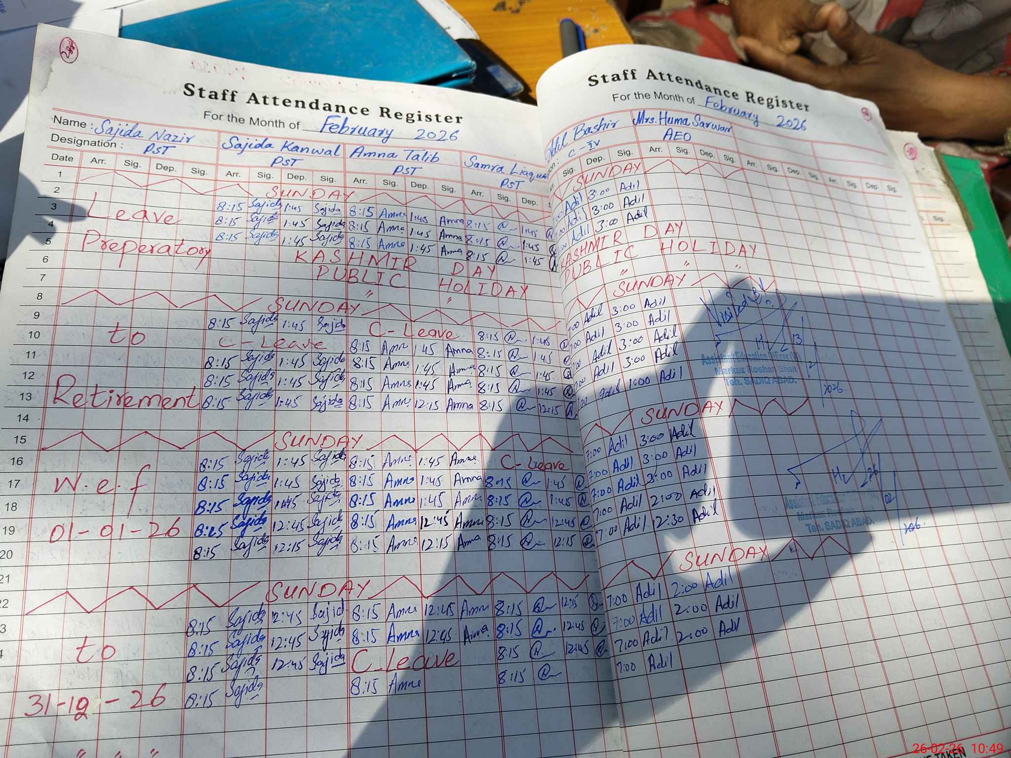 | CNIC | Full Name | Designation | R/C | Absence During Last Calender Month |