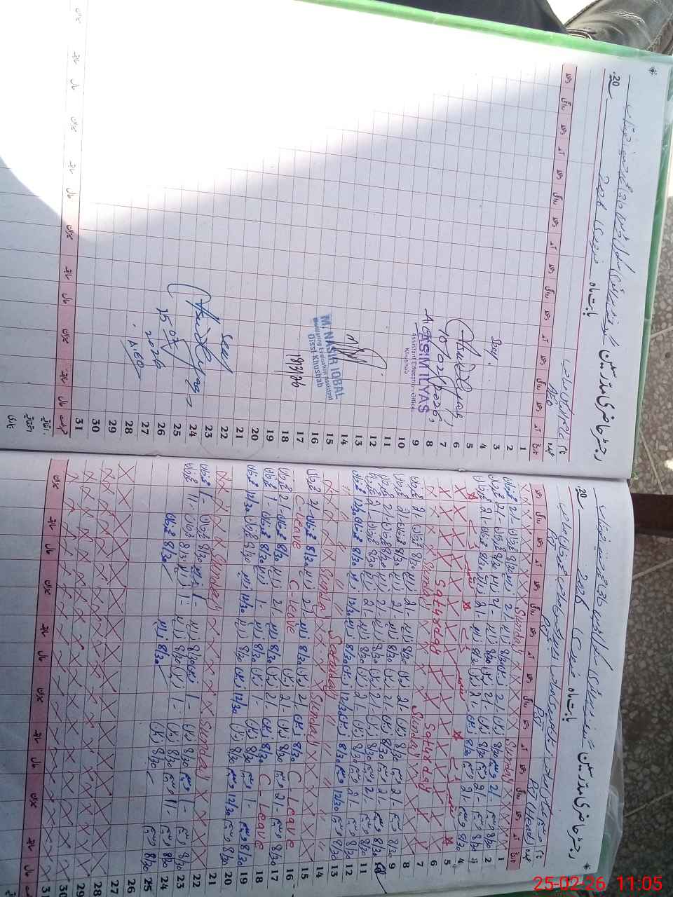 | CNIC | Full Name | Designation | R/C | Absence During Last Calender Month |