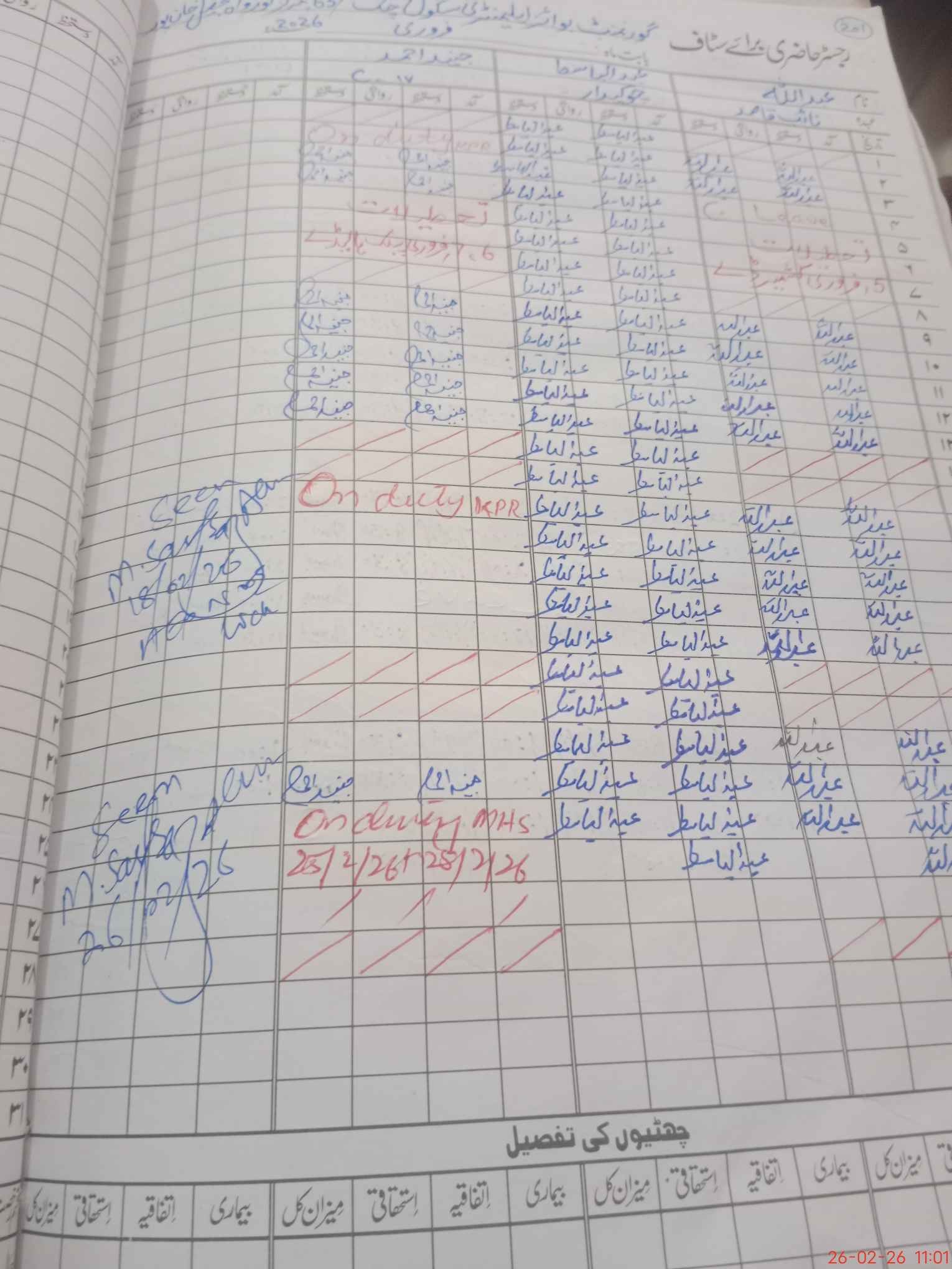 | Leave | Duty | Absent | Maternity | Medical | Ex- Pak |
