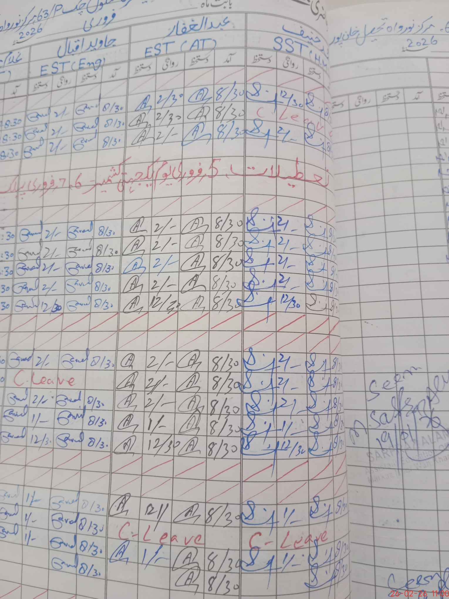 | CNIC | Full Name | Designation | R/C | Absence During Last Calender Month |
