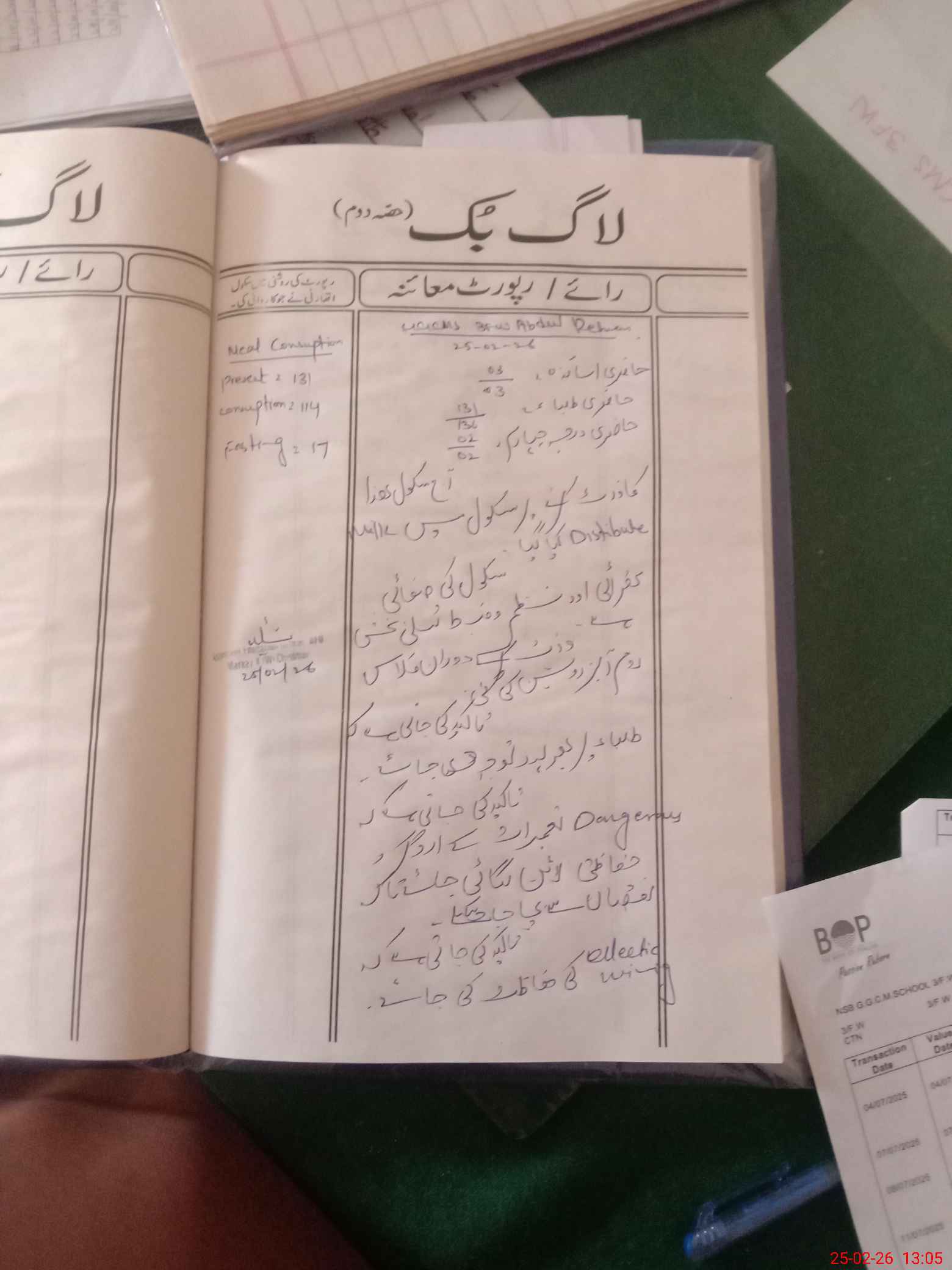 | Attendance Register | Head Teacher | MEA with School | Visit Proof |