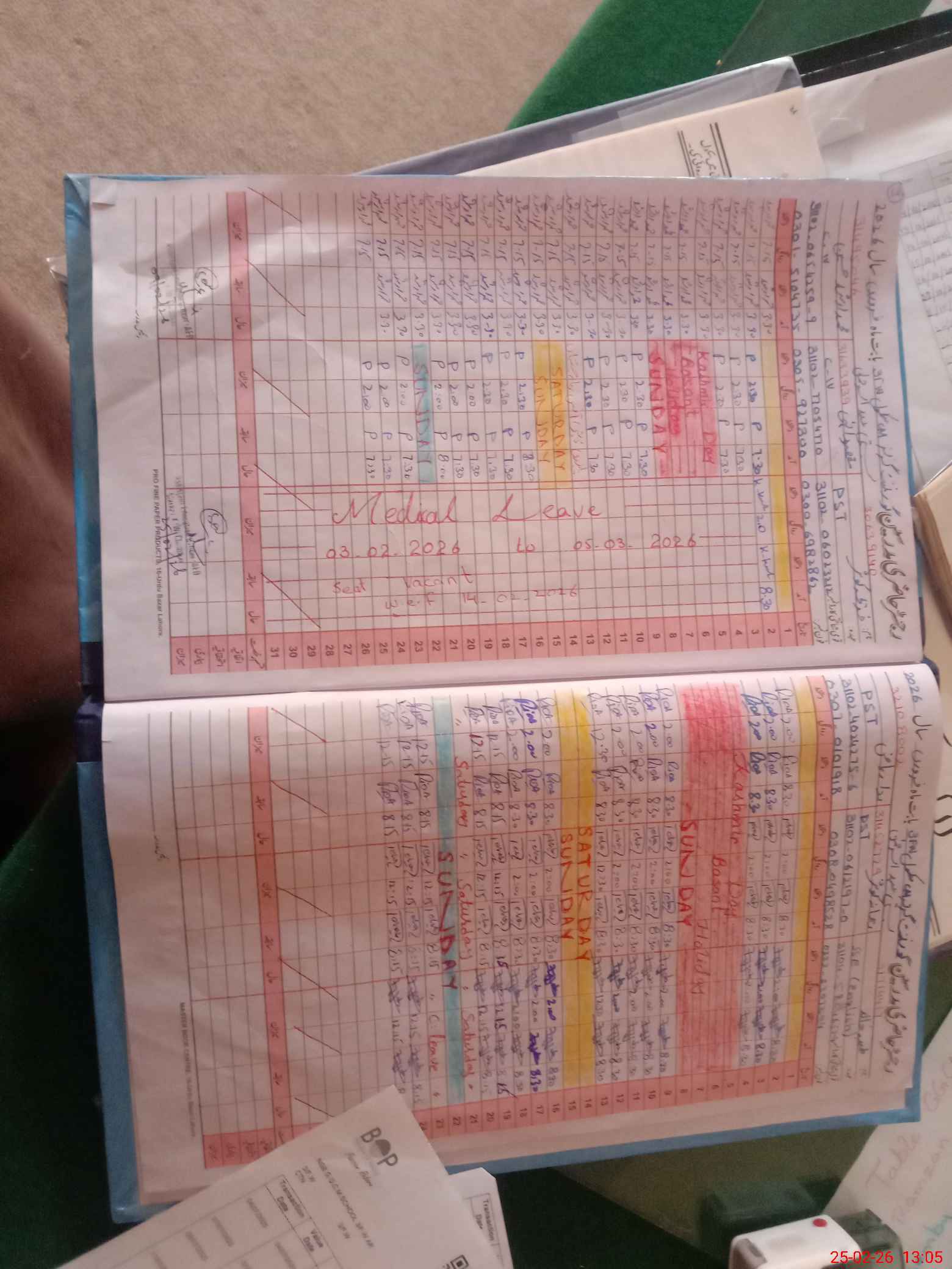 | Leave | Duty | Absent | Maternity | Medical | Ex- Pak |