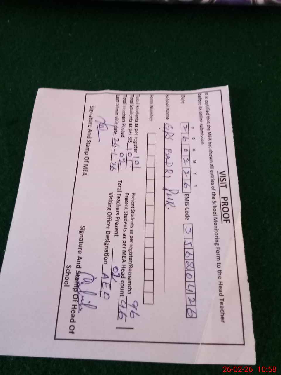 | EMIS Code: 35620426 | Name of School: GPS BADRI PUR | |||