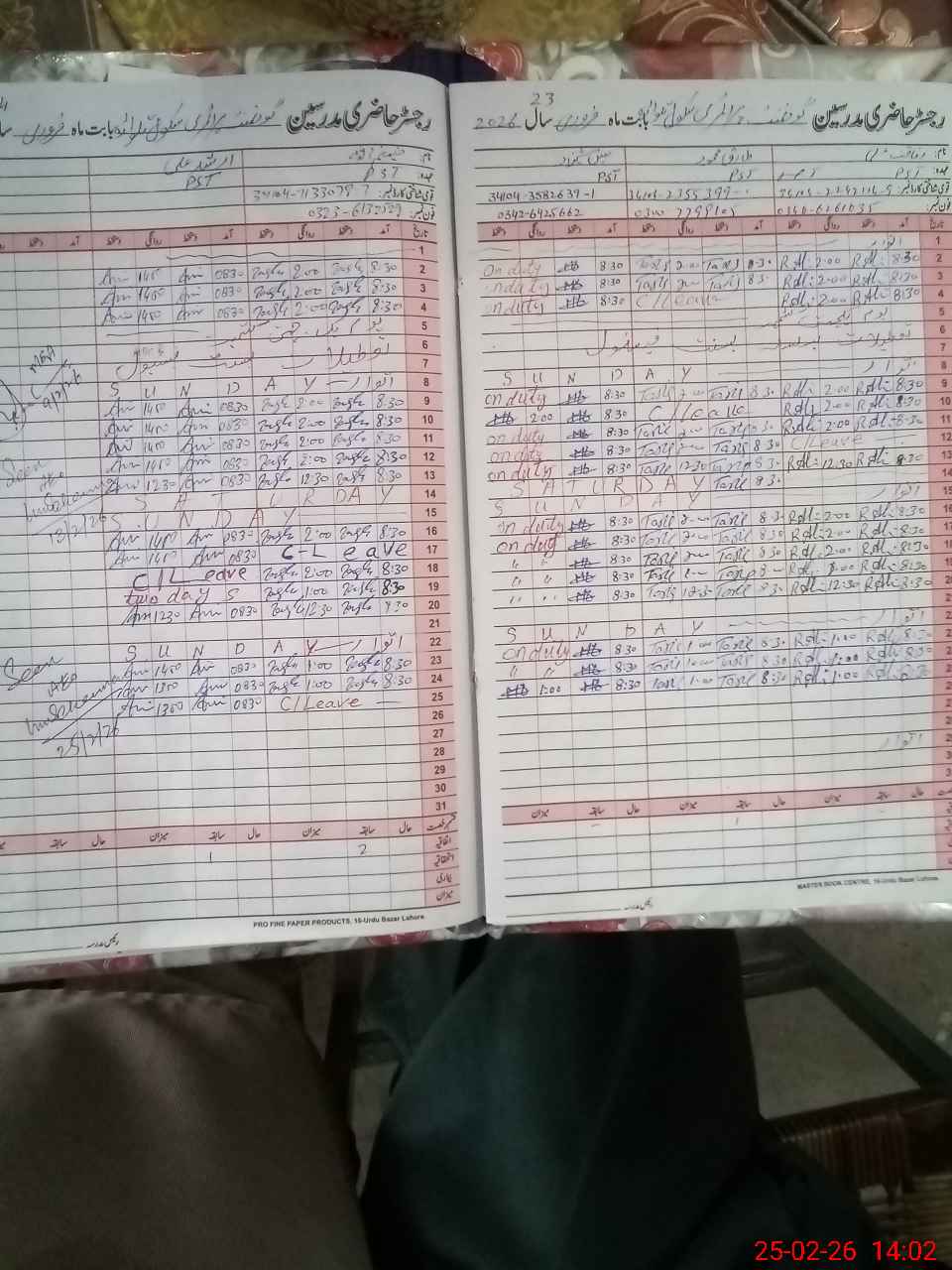 | CNIC | Full Name | Designation | R/C | Absence During Last Calender Month |