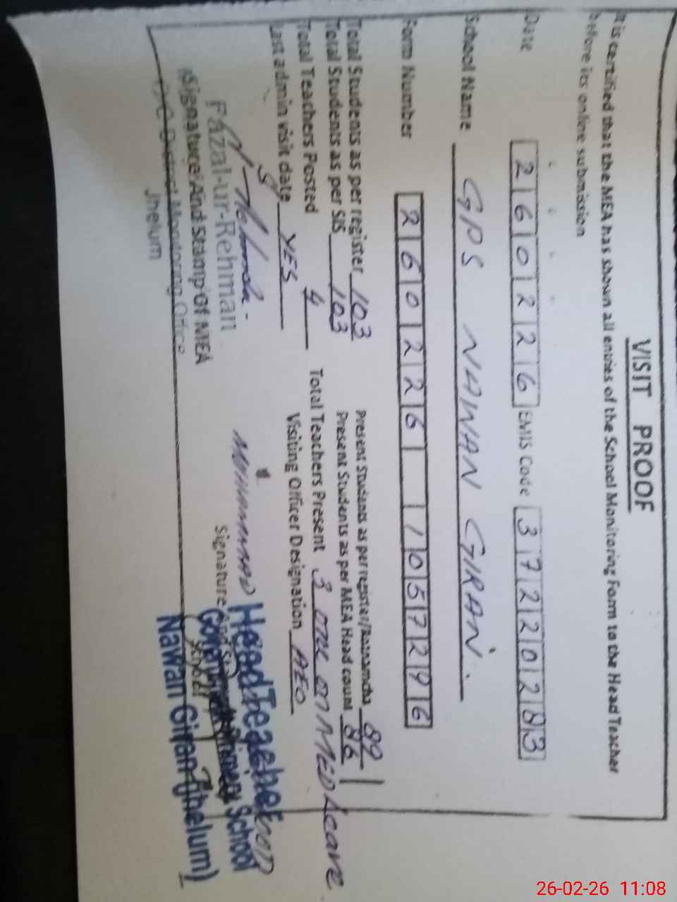 | EMIS Code: 37220283 | Name of School: GPS NAWAN GIRAN | |||