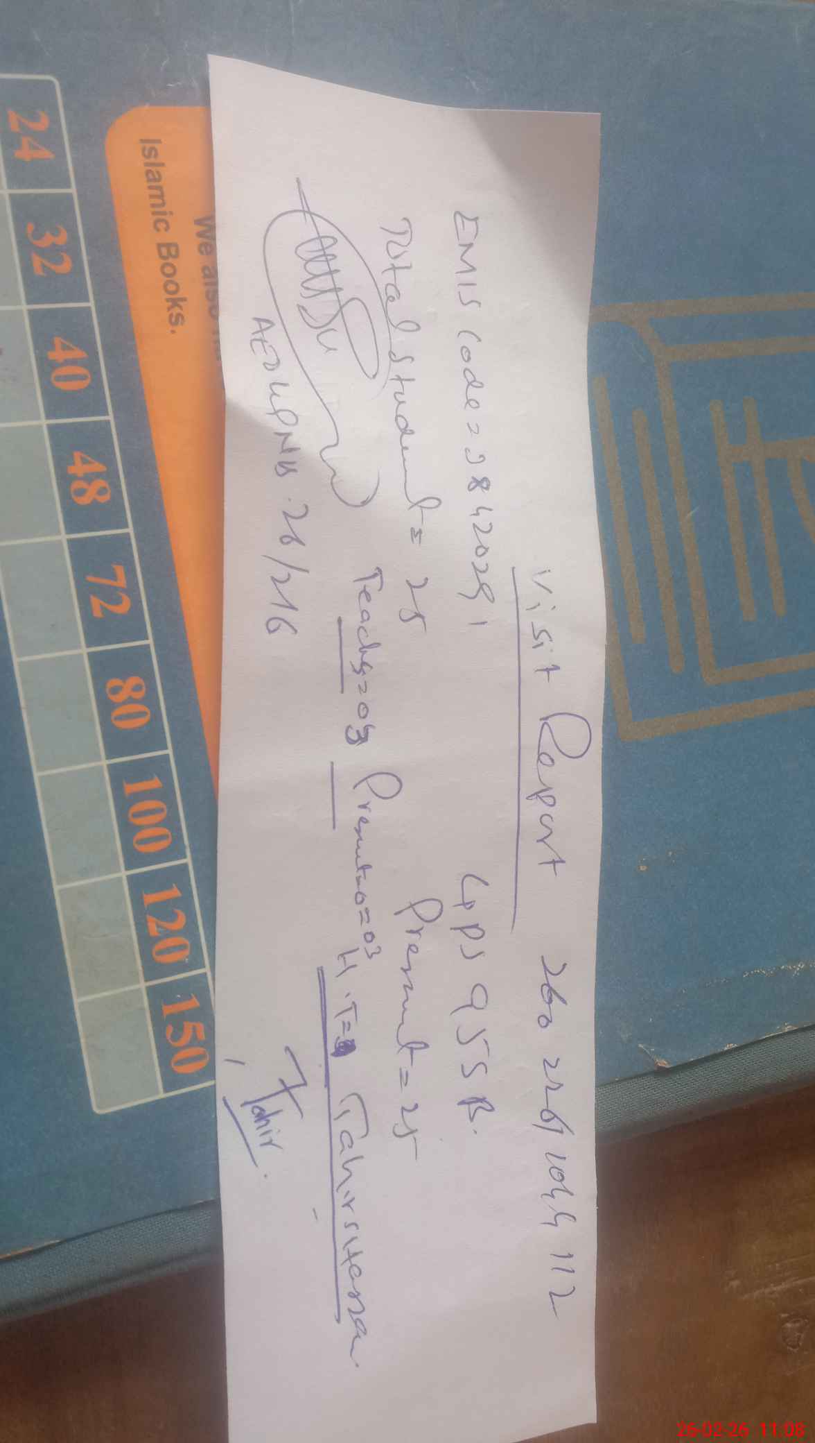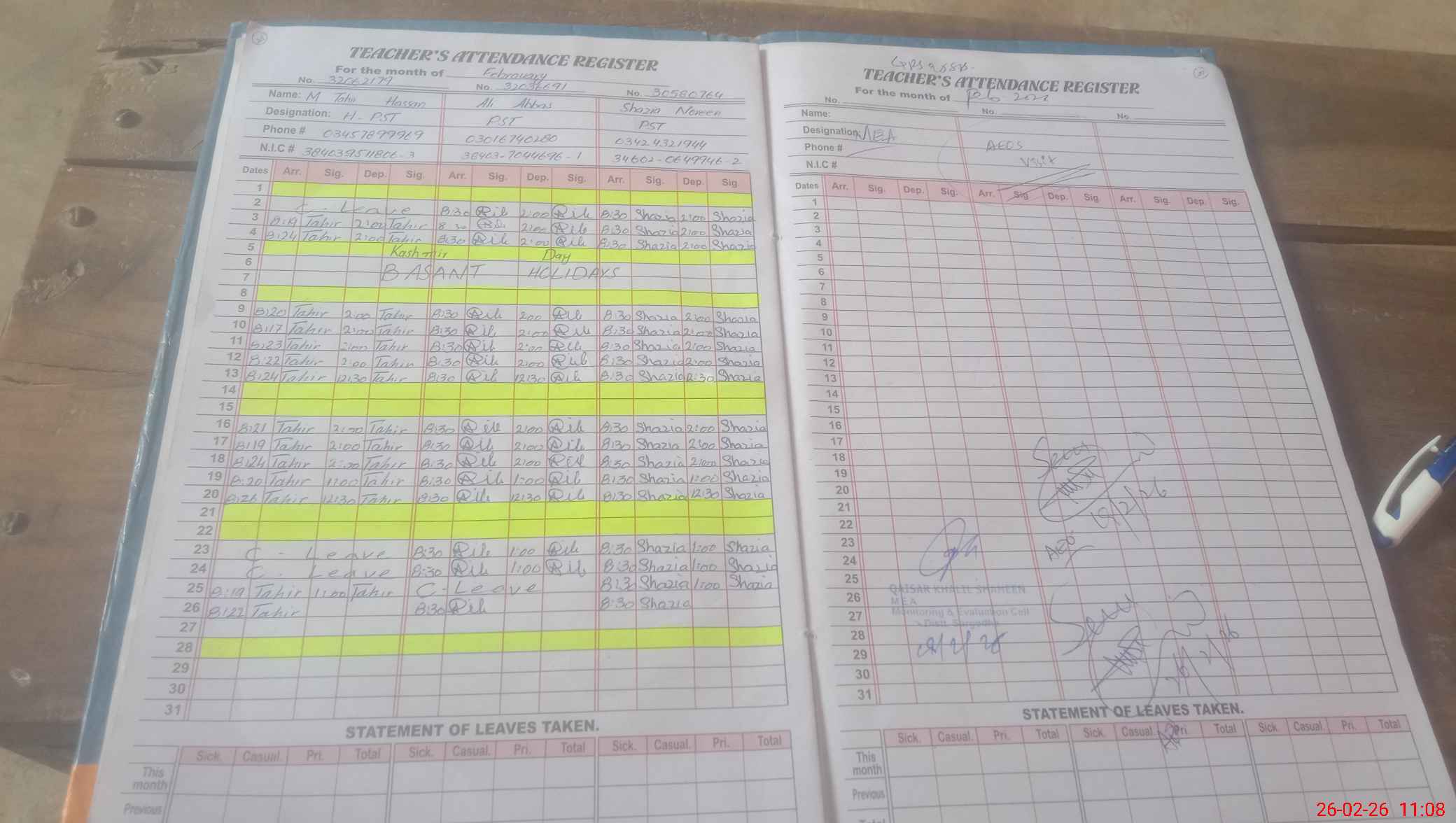 | Name: MU**** TA**** HA**** Designation: (School Headmaster's/Headmistress's) PST Phone/Cell Number: 03**** |