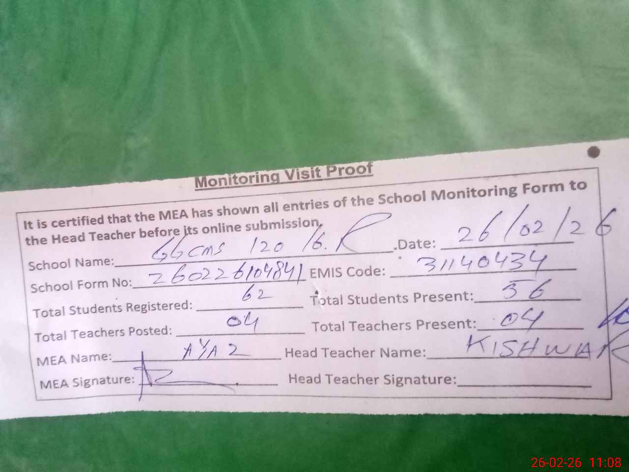 | EMIS Code: 31140434 | Name of School: GGCMS CHAK NO. 120/6-R | |||