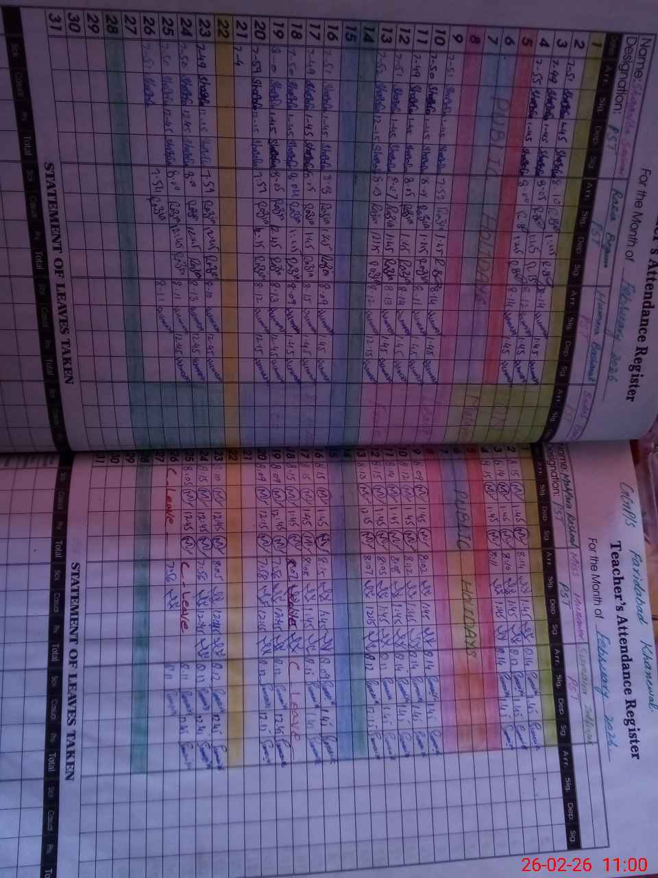 | 36**** | Sa**** Ba**** | PST Science/Maths | Regular | 0 | 0 | 0 | 0 | 0 | 0 | 0 | 0 | 0 | Absent (Un-Authorized) |