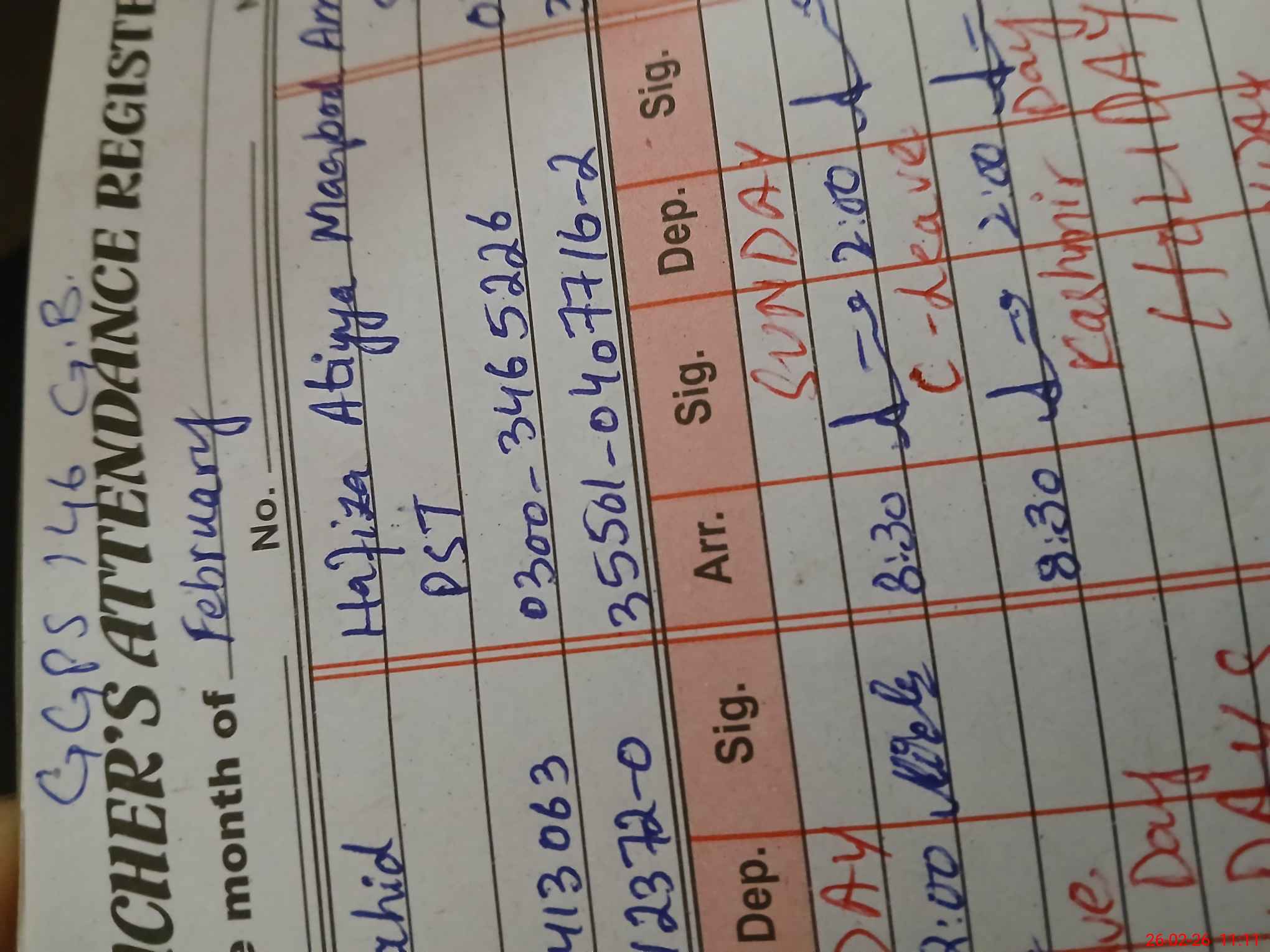 | Name: NI**** ZA**** Designation: (School Headmaster's/Headmistress's) ESE (Sci Math) Phone/Cell Number: 03**** |