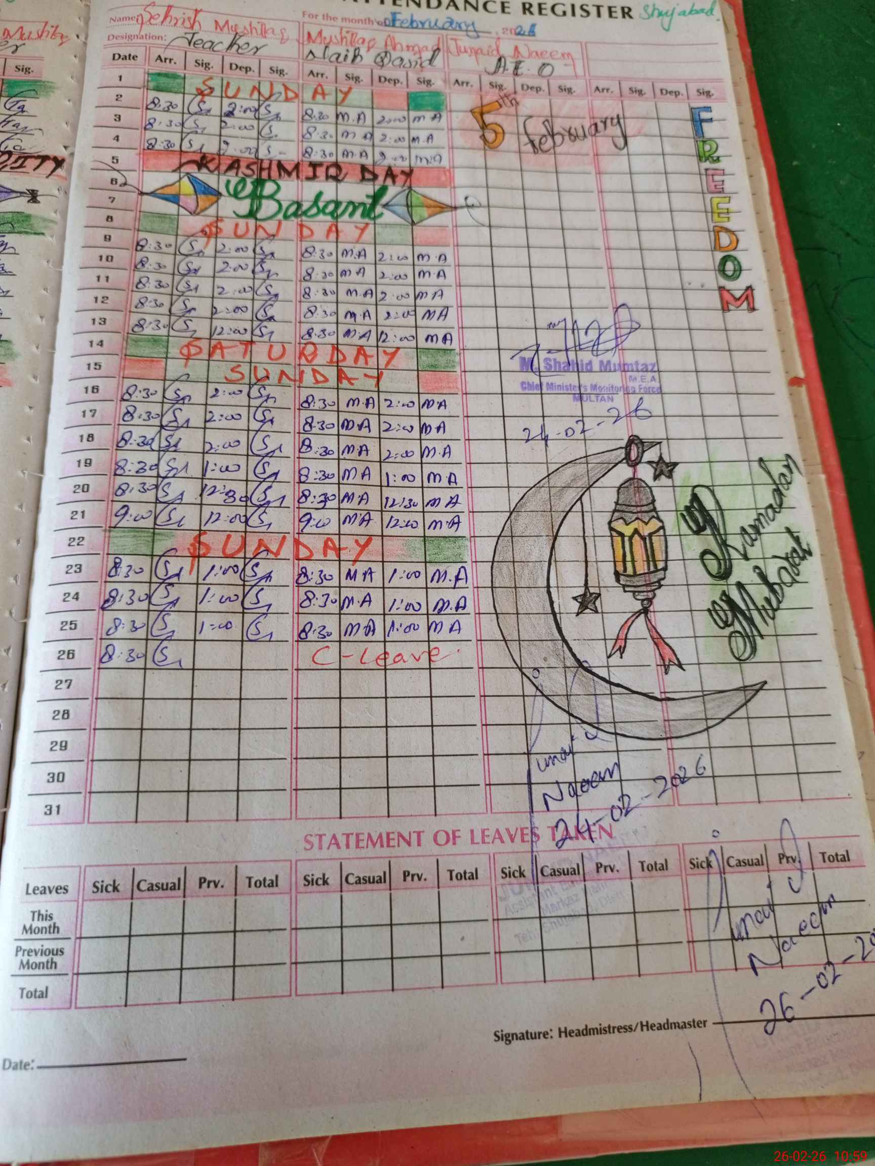 | EMIS Code: 36120253 | Name of School: GGPS KHAGAY WALA CHAH NAIB WALA SHUJABAD DISTT. MULTAN | |||