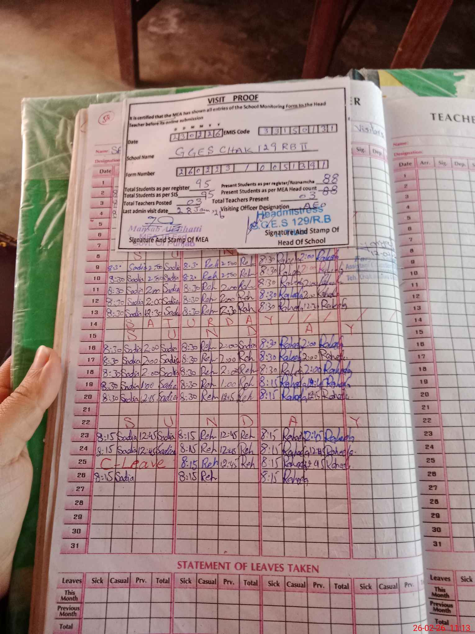 | EMIS Code: 33150131 | Name of School: GGES CHAK 129 RB II | |||
