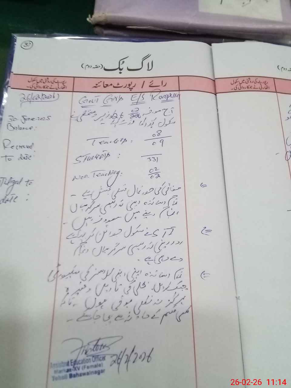 | Certified that this School was Inspected by the Undersigned MEA/DMO Today and the Information Stated Above is as Per Record. | |||||