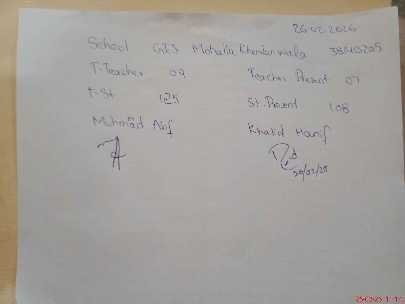 | EMIS Code: 38140205 | Name of School: GES MOHALLA KHEMTAN WALA | |||