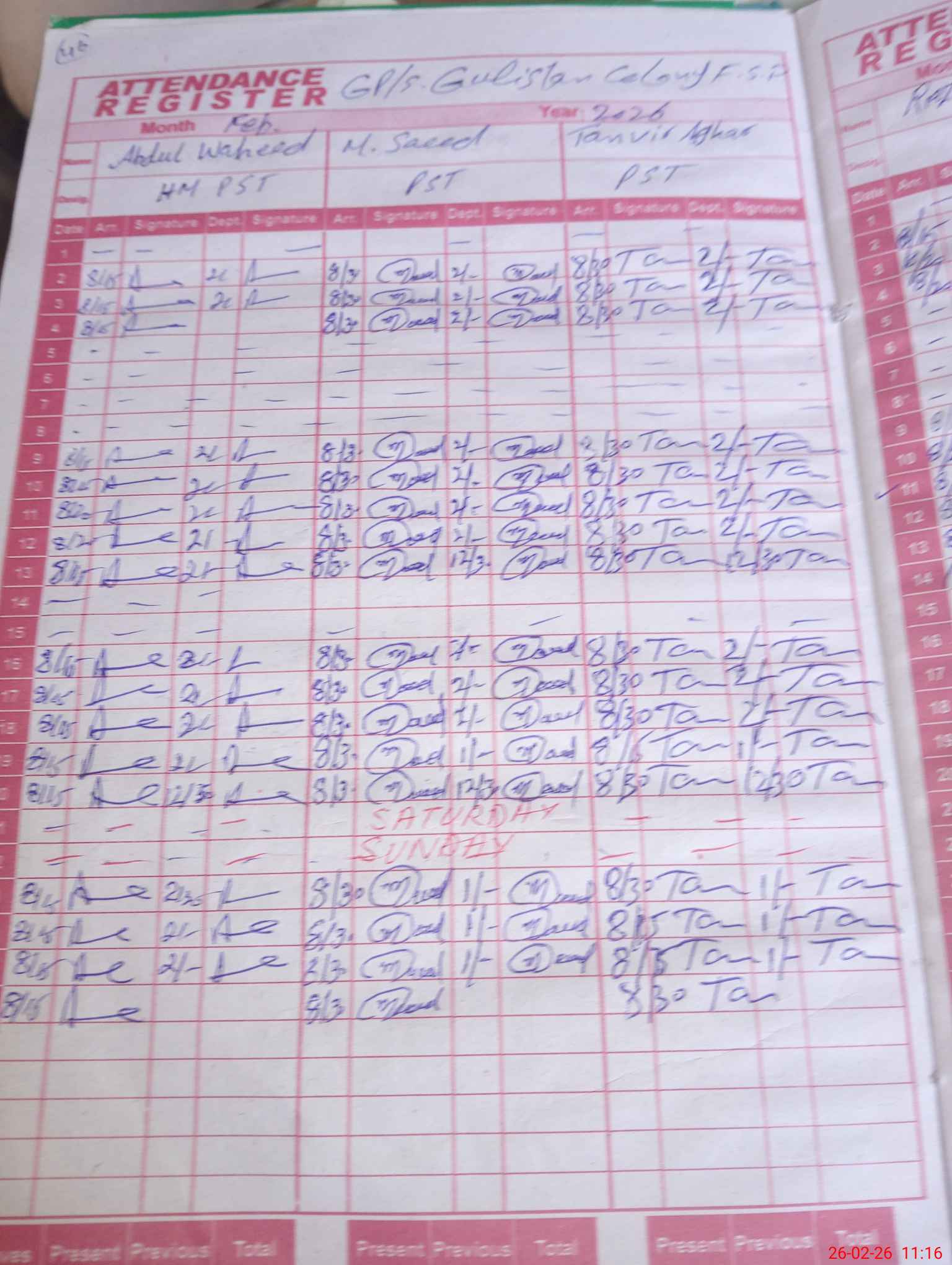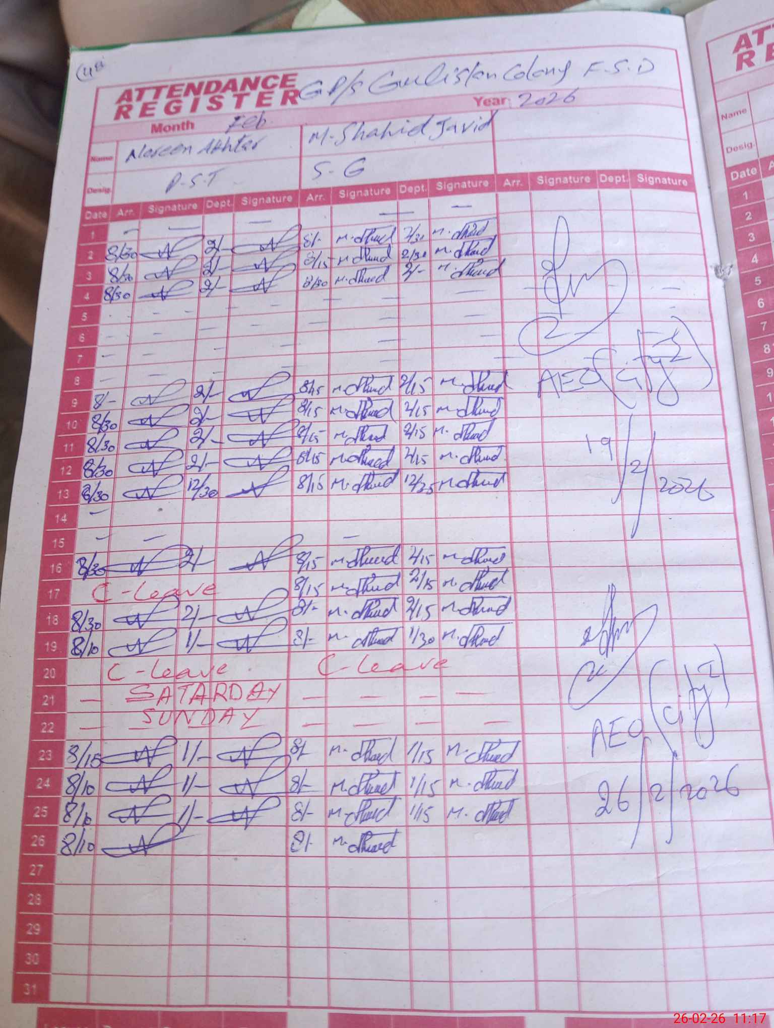 | EMIS Code: 33110038 | Name of School: GPS GULISTAN COLONY FSD | |||