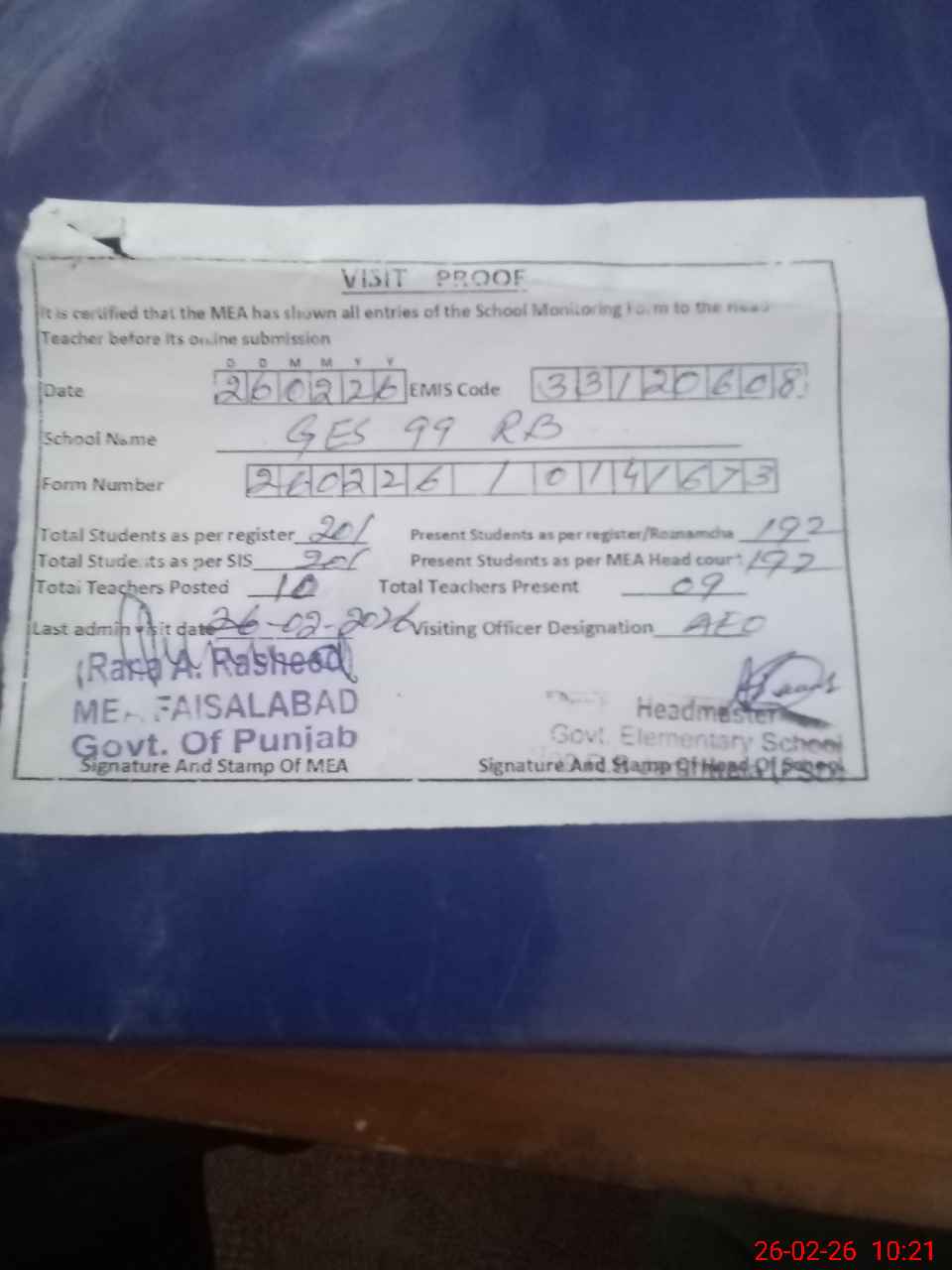 | EMIS Code: 33120608 | Name of School: GES CHAK 99 RB | |||