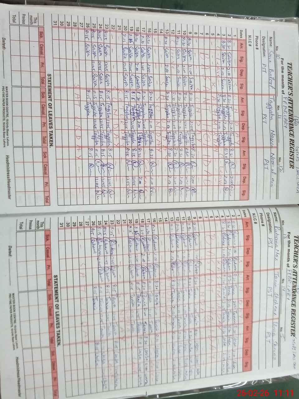 | Name: Sa**** Ta**** Designation: (School Headmaster's/Headmistress's) PST Phone/Cell Number: 03**** |