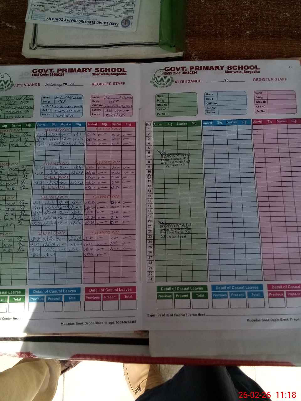 | Name: Sh**** As**** Designation: (School Headmaster's/Headmistress's) PST Phone/Cell Number: 03**** |
