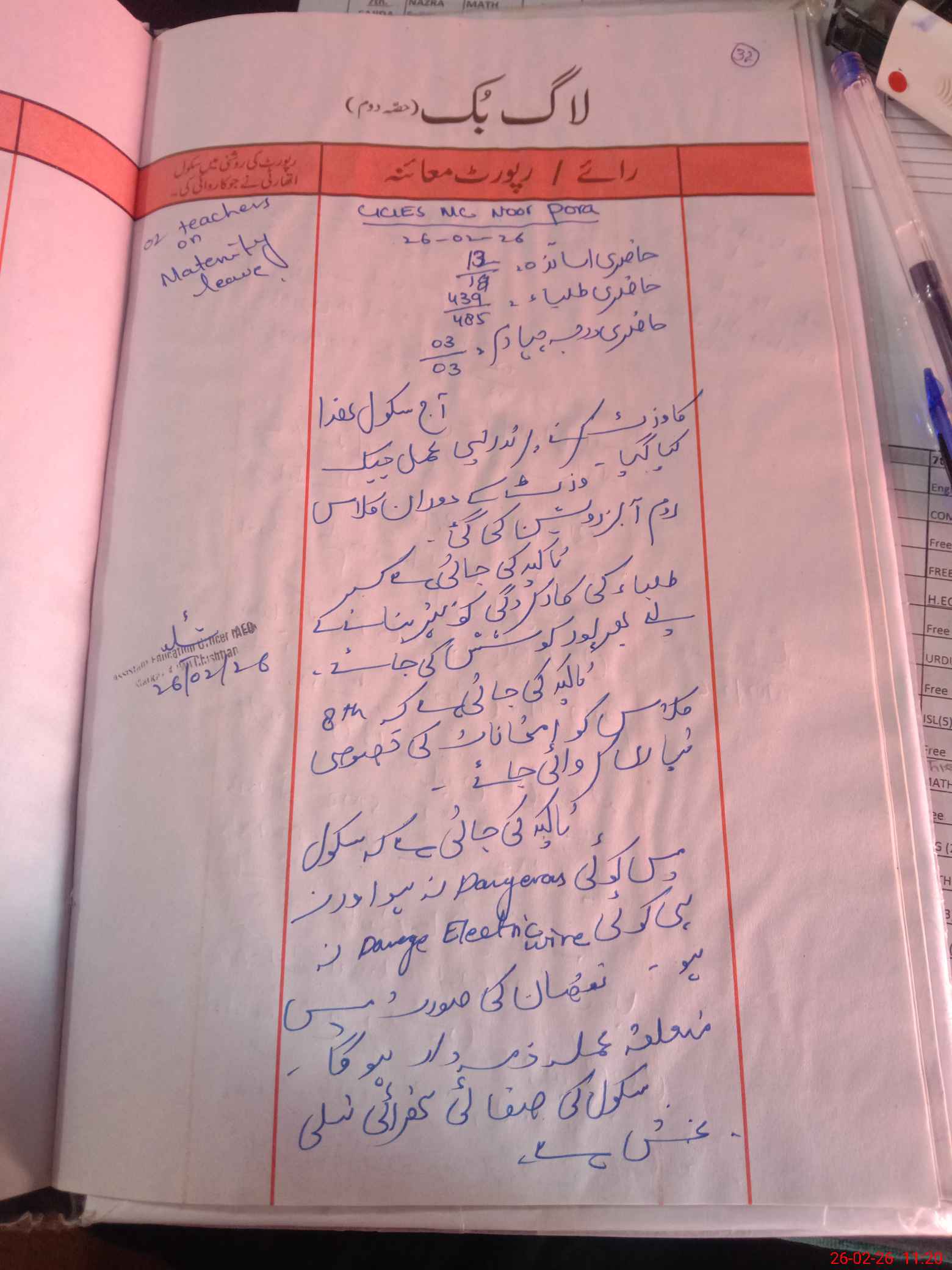 | Certified that this School was Inspected by the Undersigned MEA/DMO Today and the Information Stated Above is as Per Record. | |||||