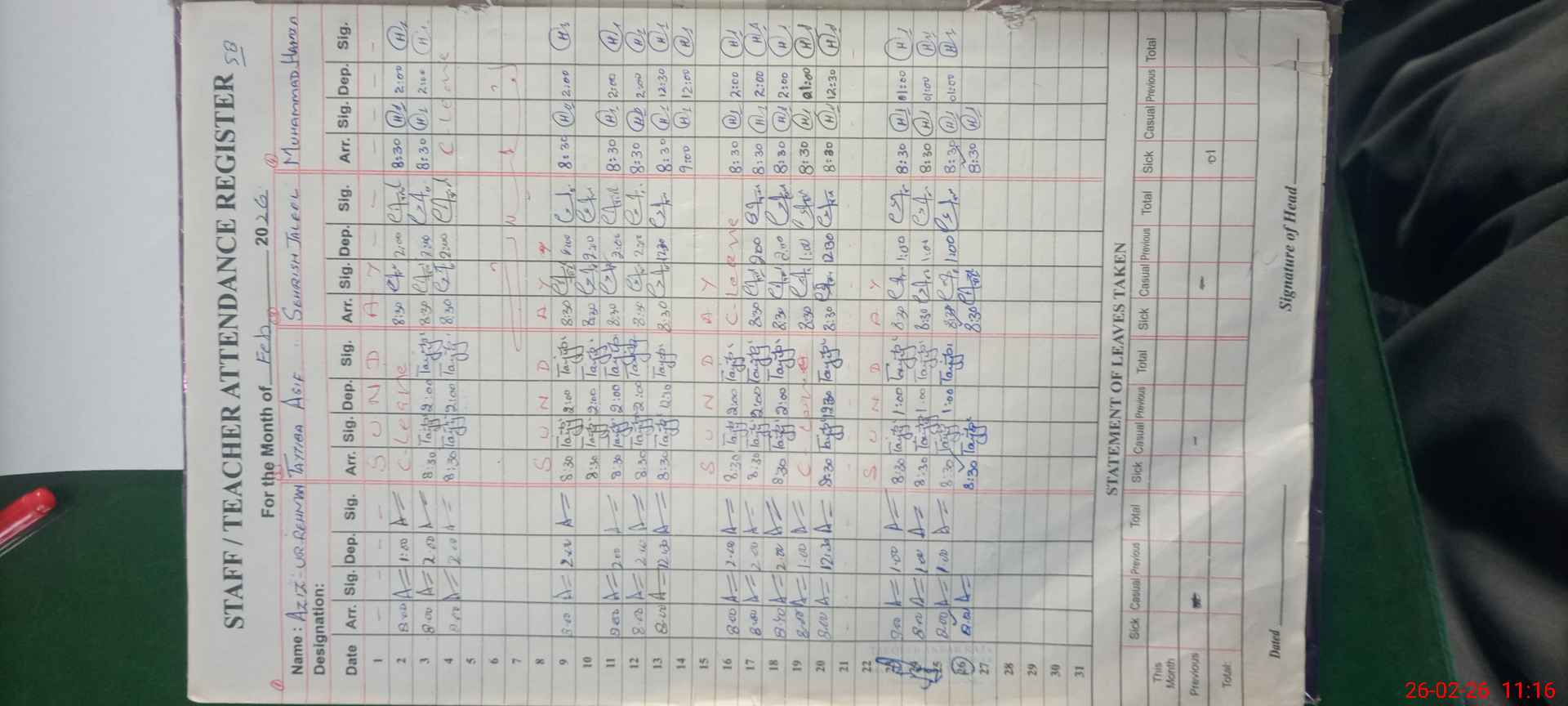 | Name: Az**** UrRe**** Designation: (School Headmaster's/Headmistress's) S.S.T. Phone/Cell Number: 03**** |