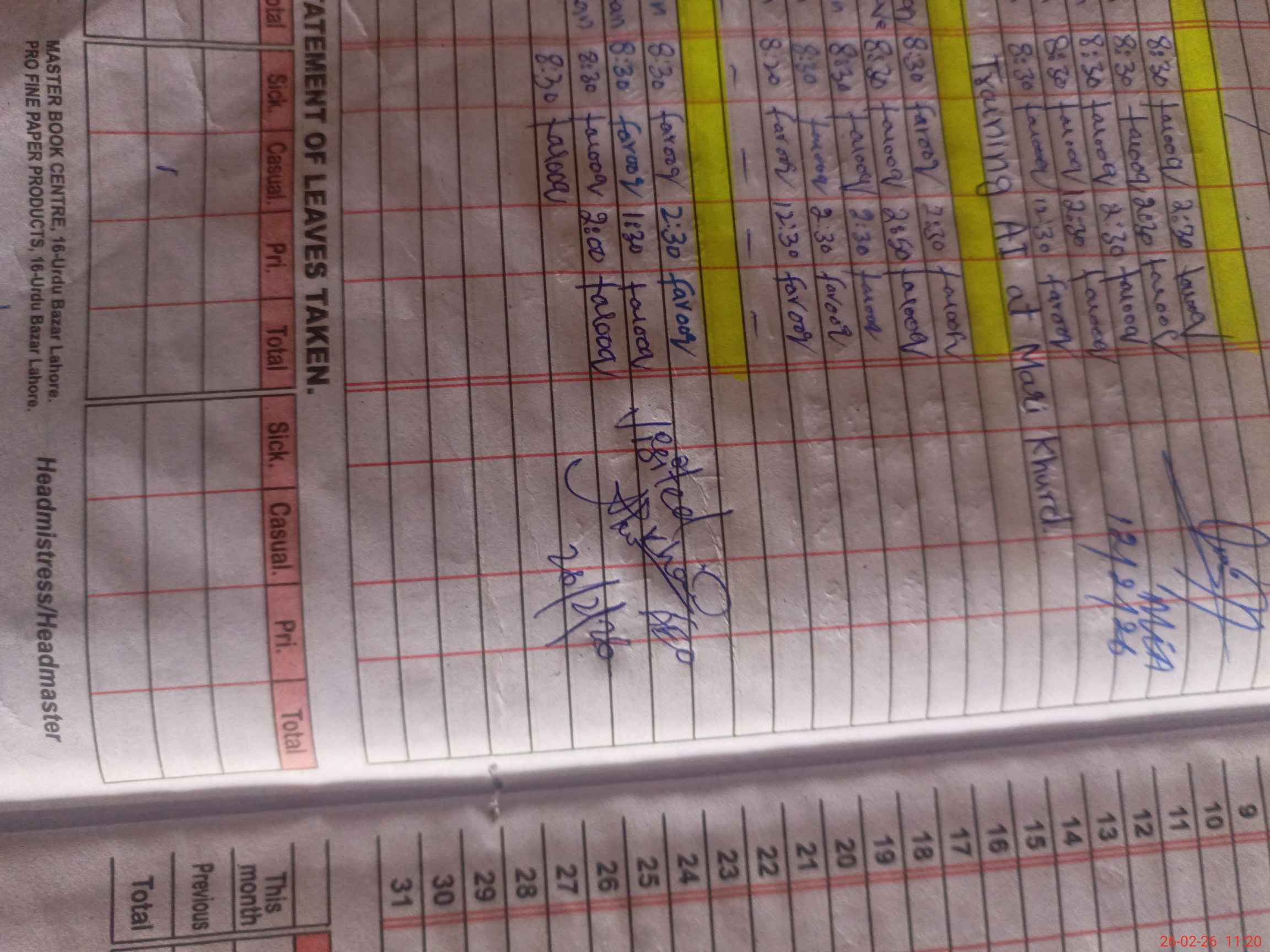 | Leave | Duty | Absent | Maternity | Medical | Ex- Pak |