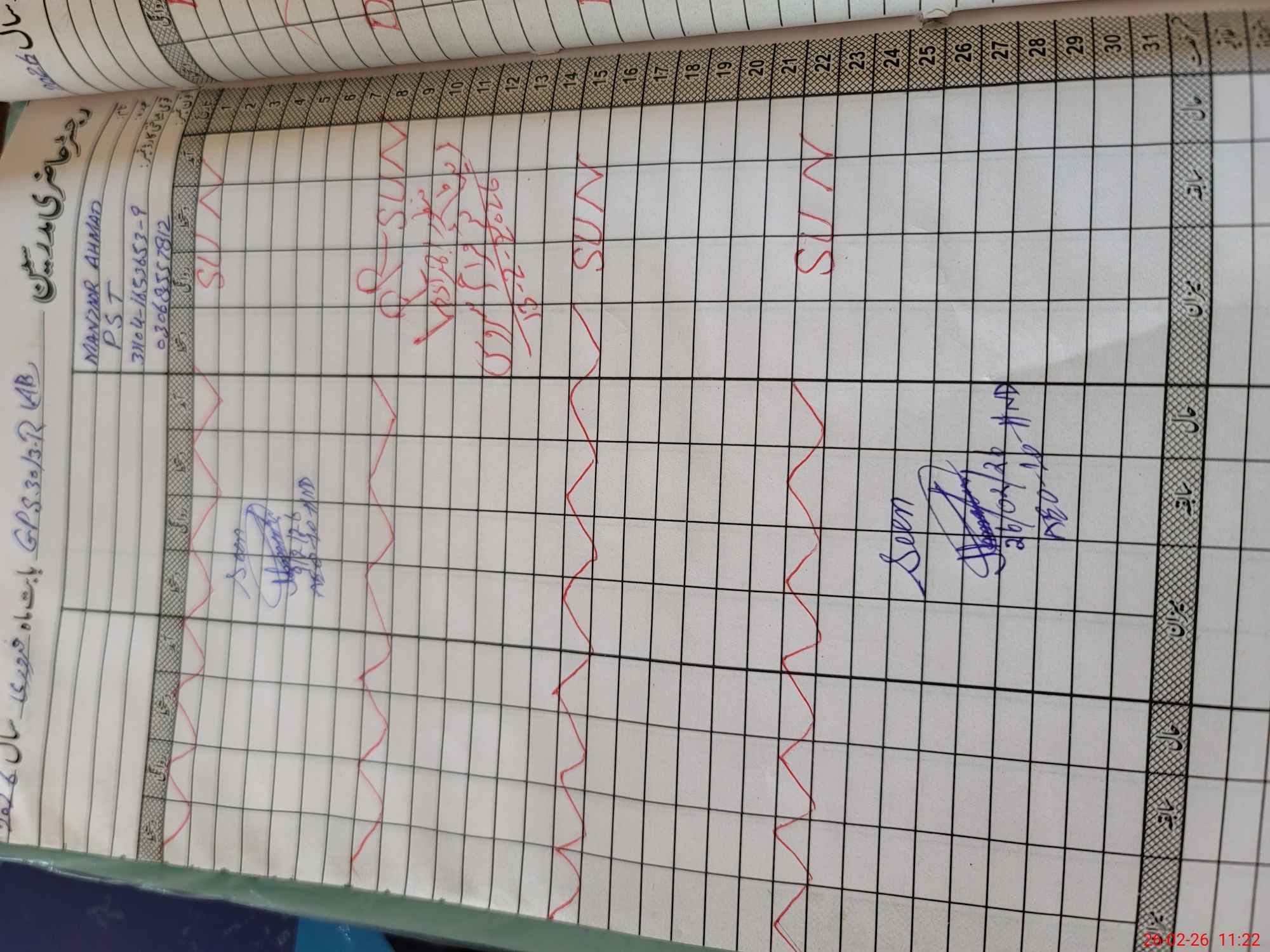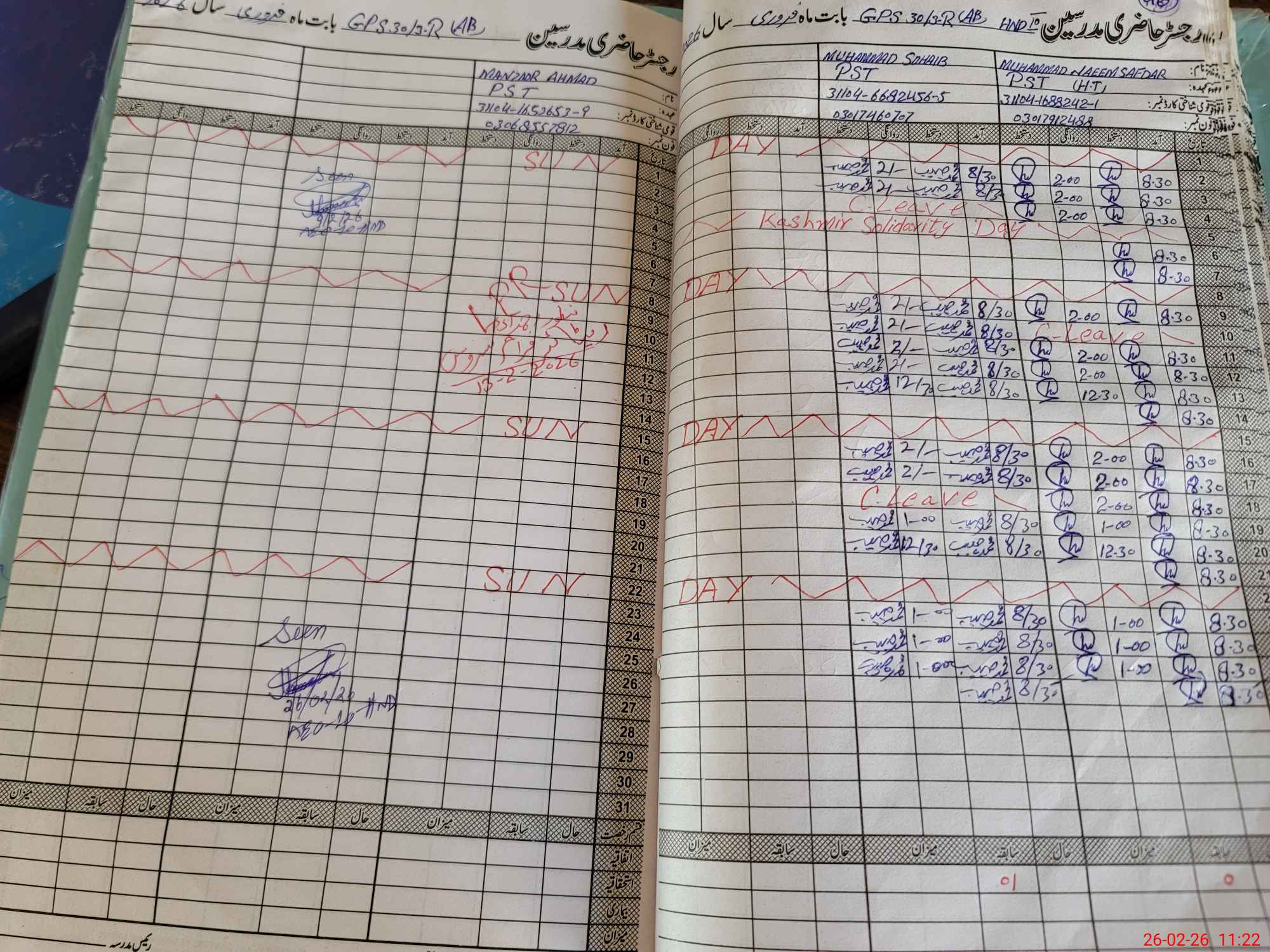 | CNIC | Full Name | Designation | R/C | Absence During Last Calender Month |