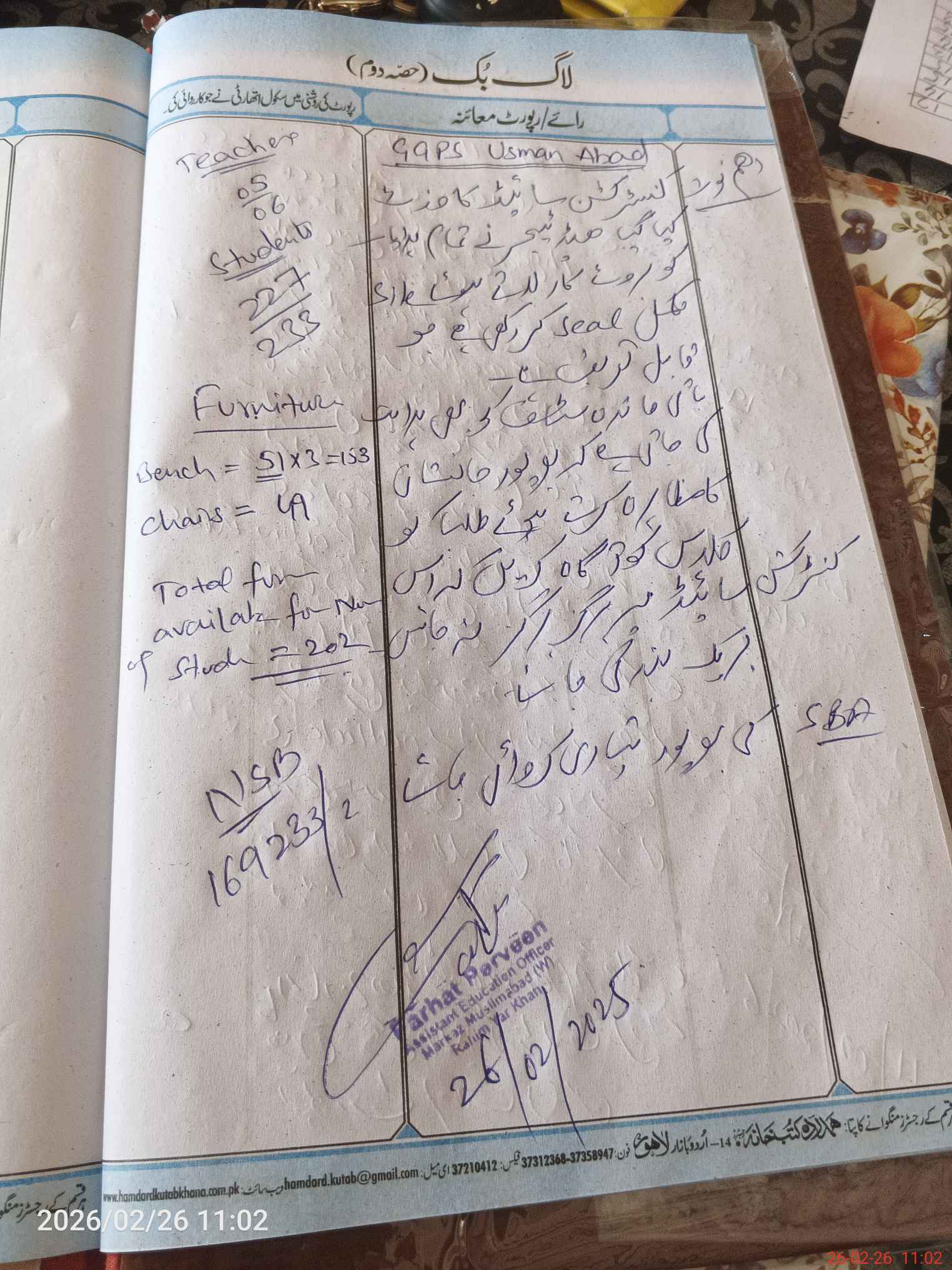 | EMIS Code: 31330567 | Name of School: GGPS USMAN ABAD | |||