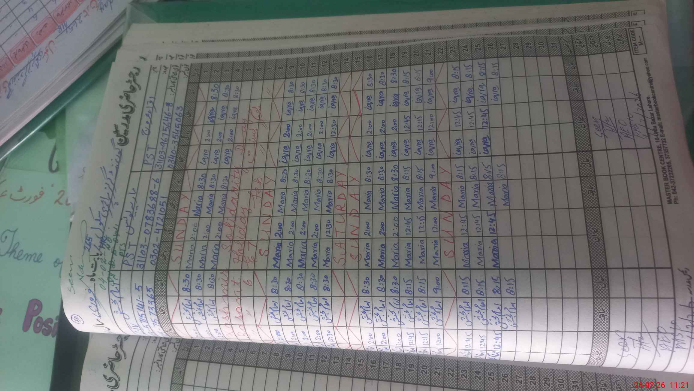 | Leave | Duty | Absent | Maternity | Medical | Ex- Pak |