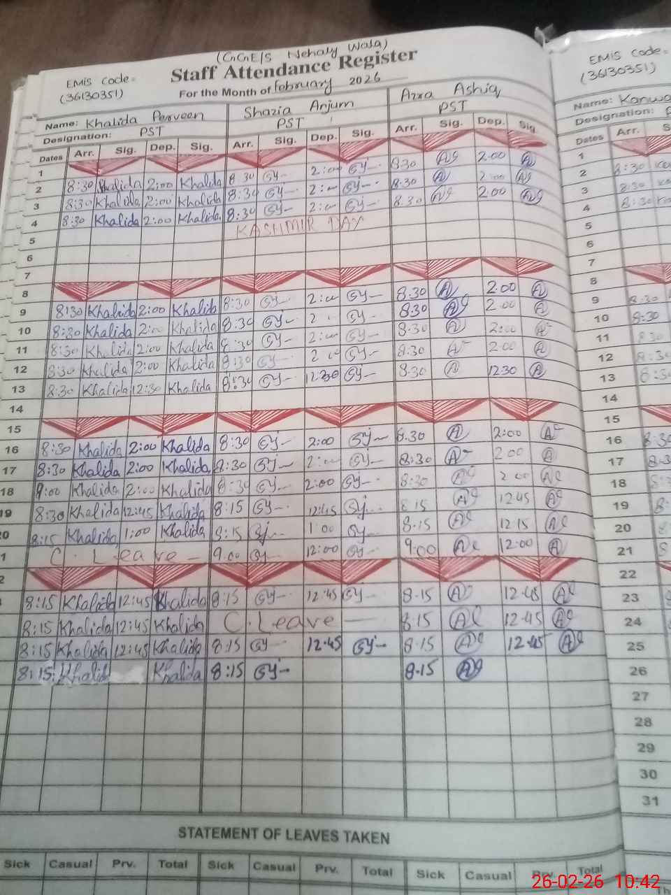 | 36**** | Ka**** Sa**** | PST Science/Maths | Regular | 0 | 0 | 0 | 0 | 0 | 0 | 0 | 0 | 0 | Casual |