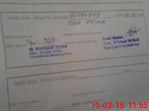 | Certified that this School was Inspected by the Undersigned MEA/DMO Today and the Information Stated Above is as Per Record. | |||||