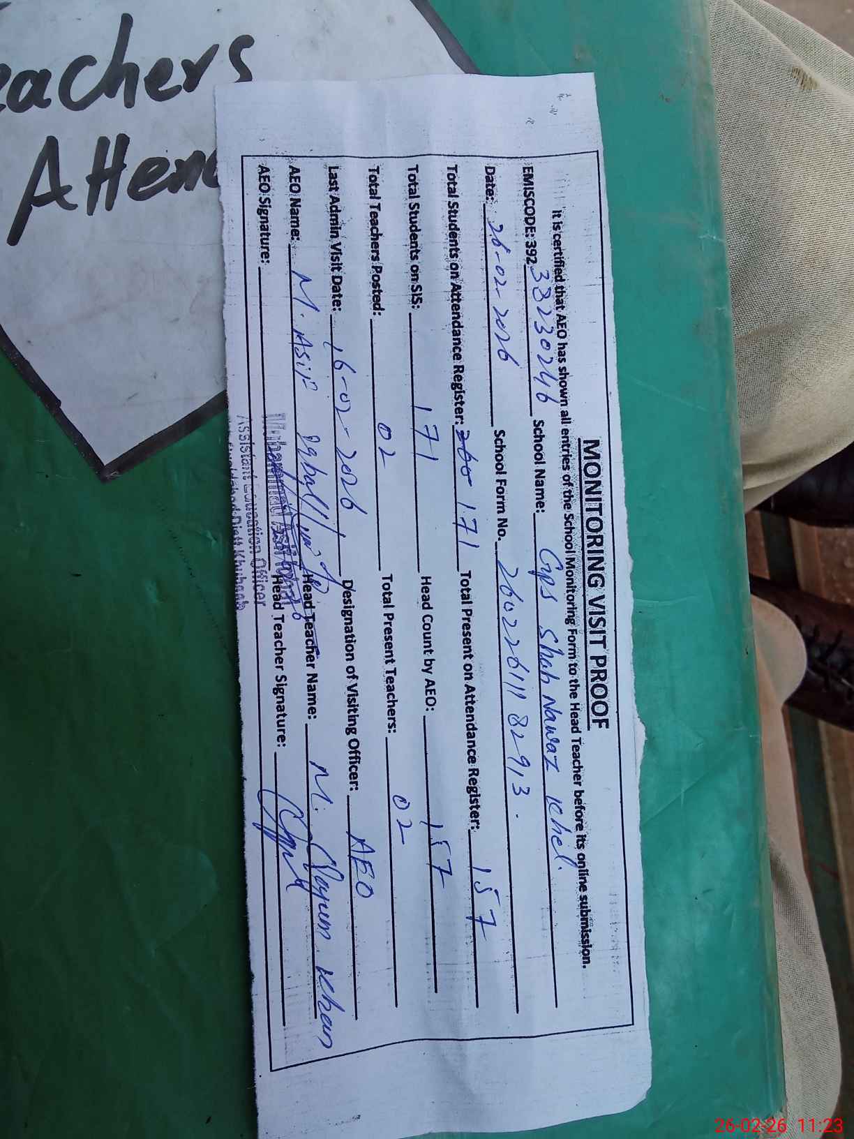 | EMIS Code: 38230246 | Name of School: GPS SHAH NAWAZ KHAIL | |||