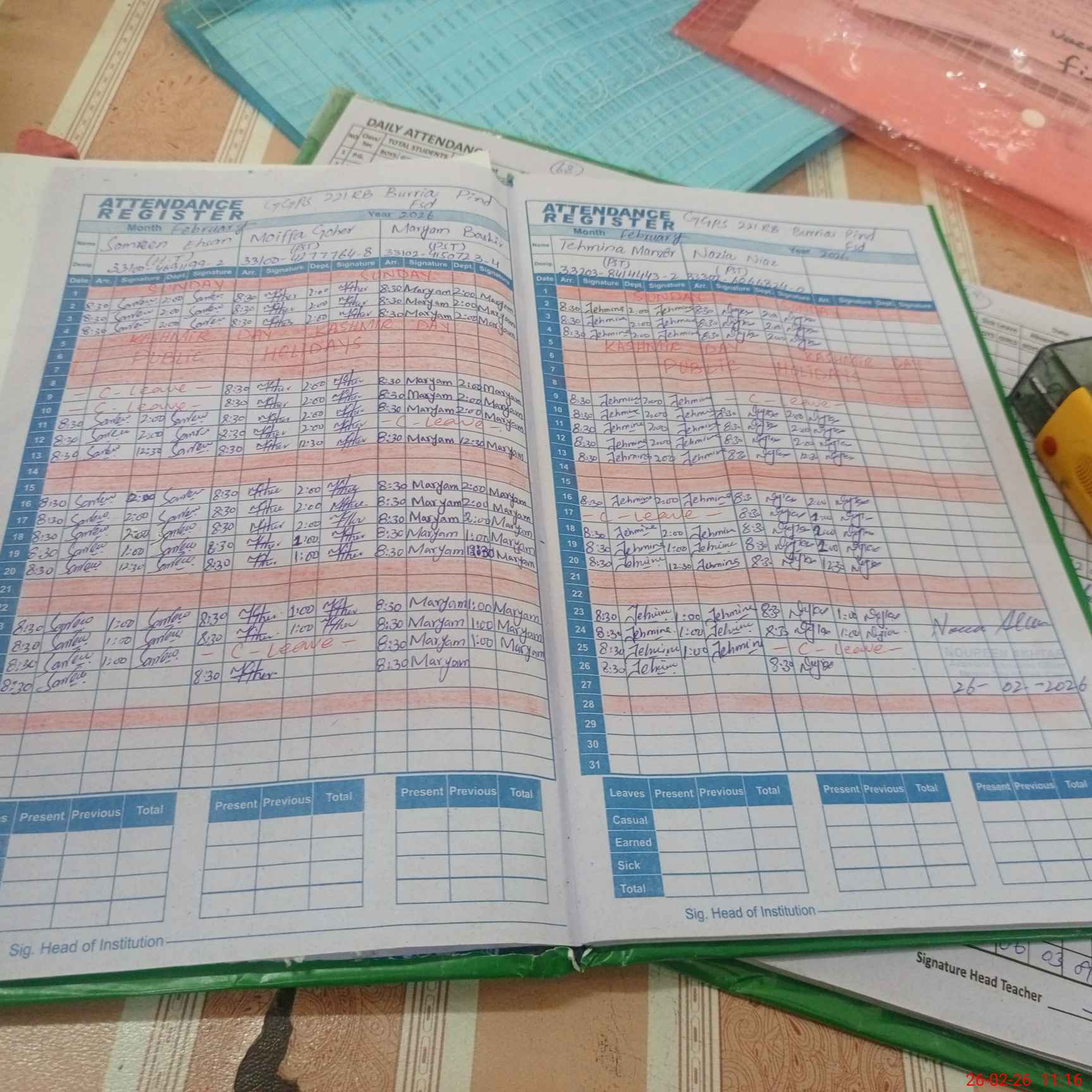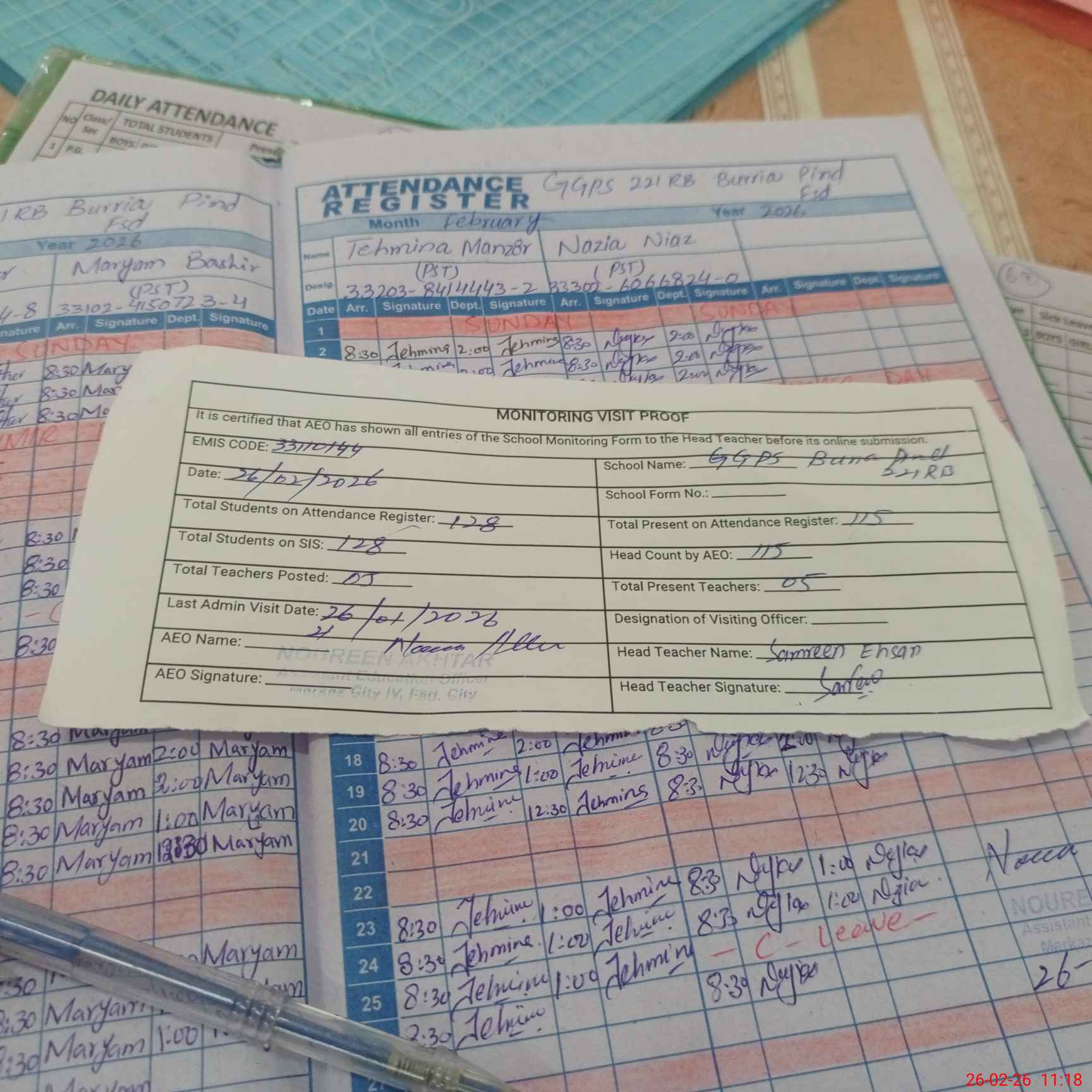 | Attendance Register | Head Teacher | MEA with School | Visit Proof |