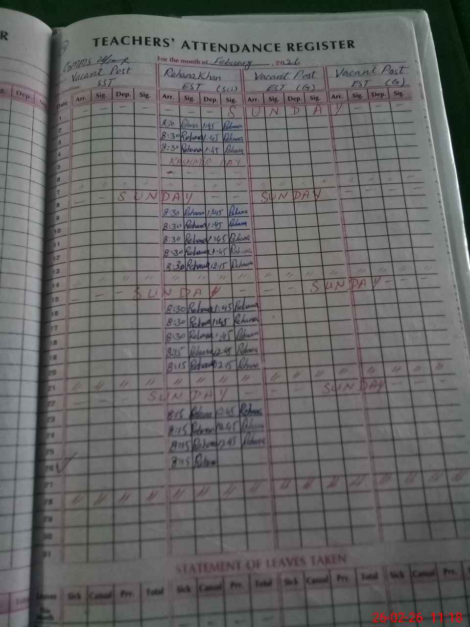 | Name: Re**** Kh**** Designation: (School Headmaster's/Headmistress's) EST Sci Phone/Cell Number: 03**** |