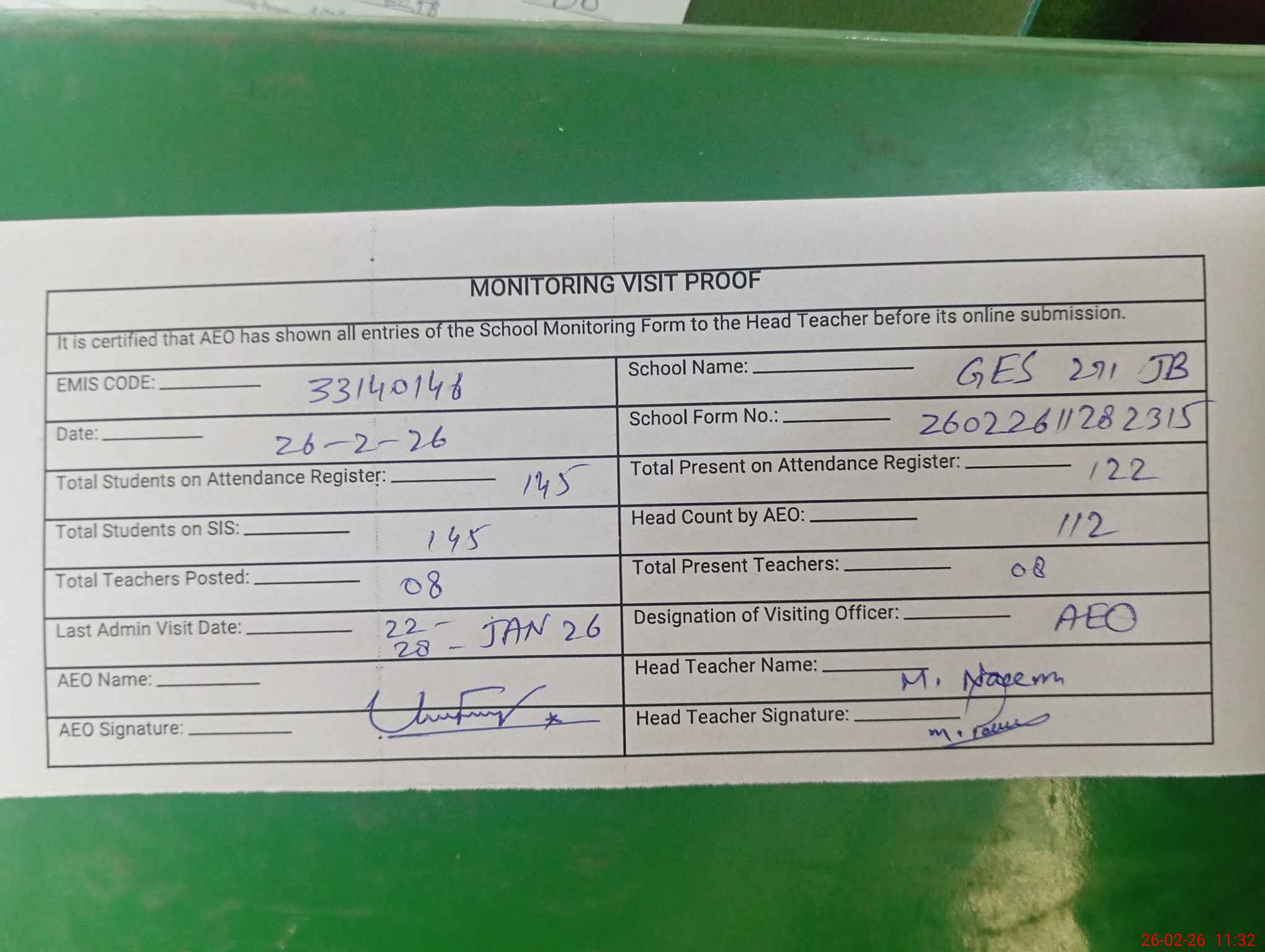 | EMIS Code: 33140146 | Name of School: GES CHAK 271 JB FSD | |||