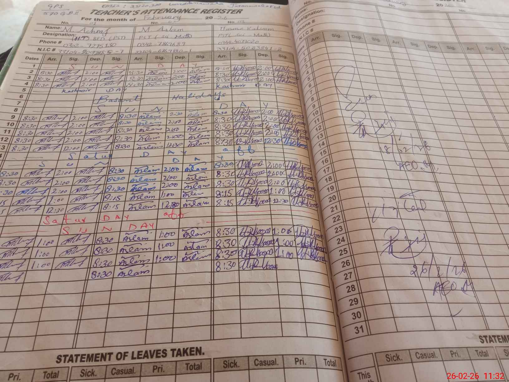 | CNIC | Full Name | Designation | R/C | Absence during last cal. month |