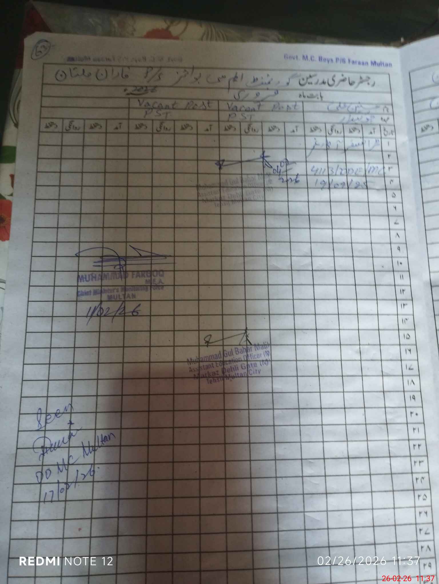 | EMIS Code: 36110185 | Name of School: GPS MC FARAAN NEAR KHONI BURJ MULTAN | |||