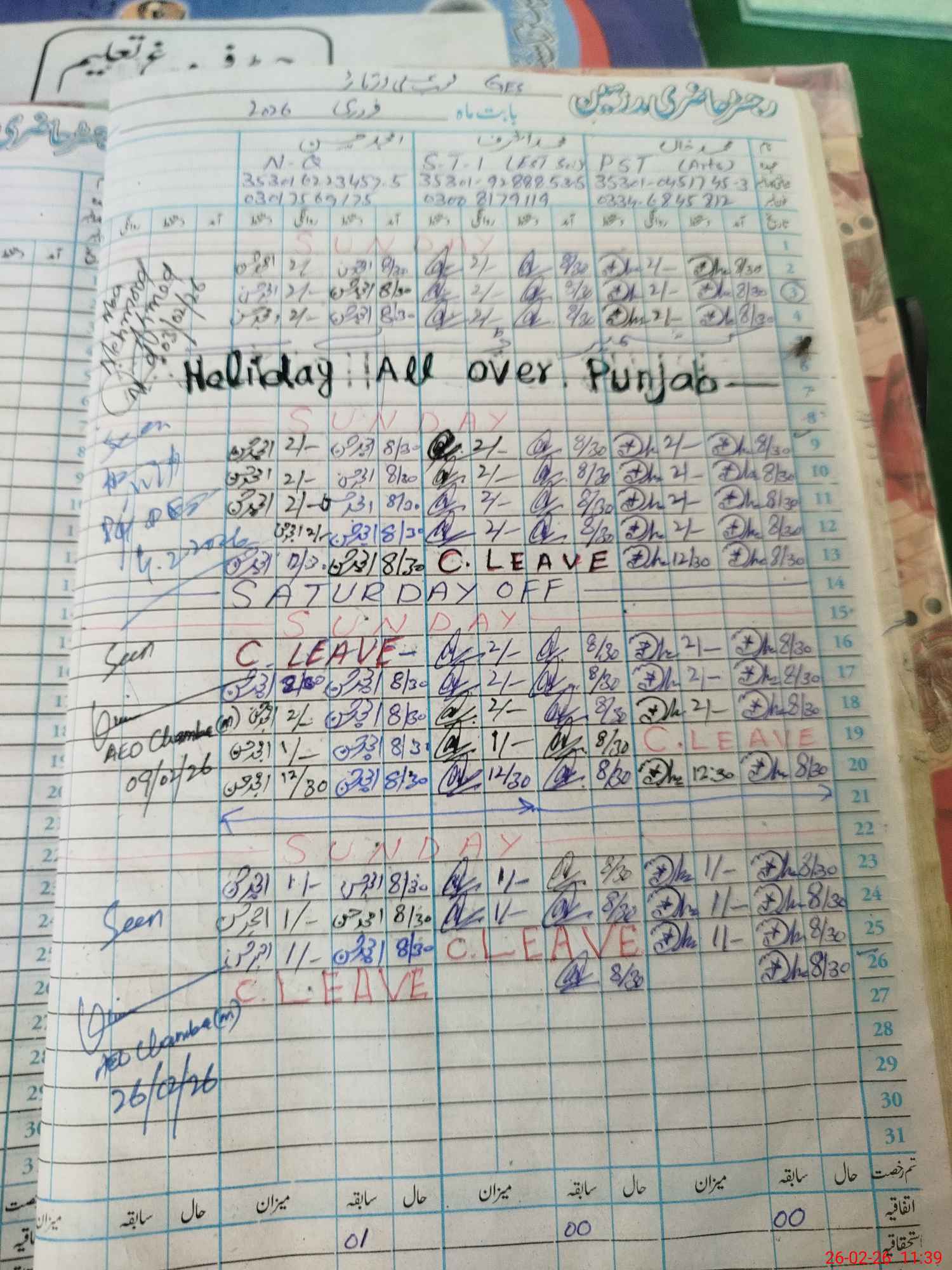 | Name: FA**** SH**** MA**** Designation: (School Headmaster's/Headmistress's) S.S.T.(Arts) Phone/Cell Number: 03**** |