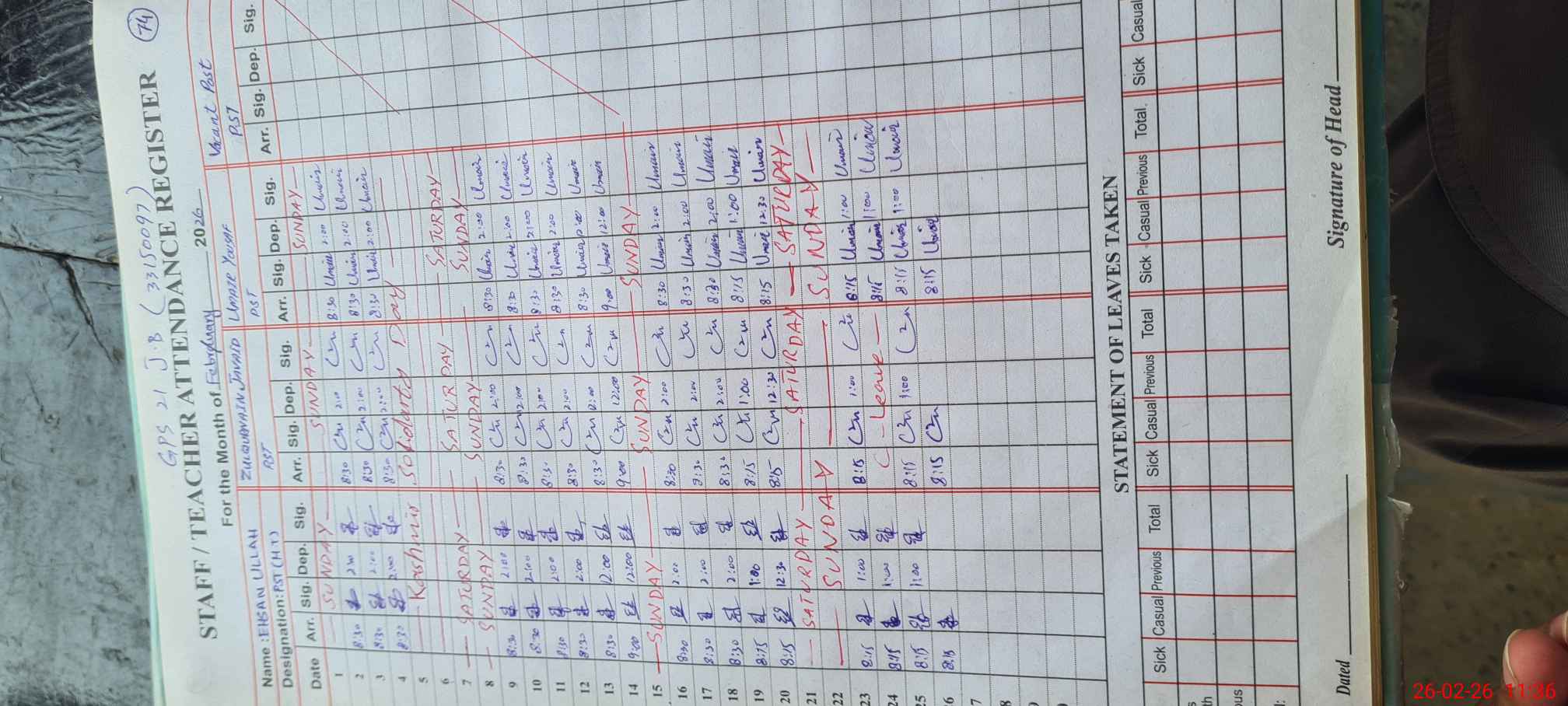| Name: EH**** CH**** Designation: (School Headmaster's/Headmistress's) PST Phone/Cell Number: 03**** |