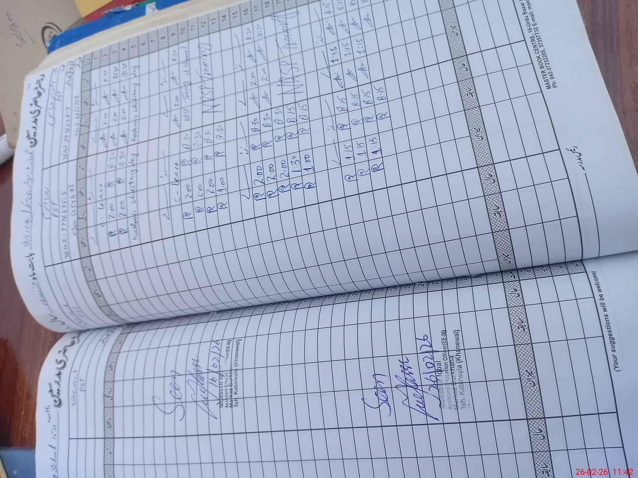 | CNIC | Full Name | Designation | R/C | Absence During Last Calender Month |