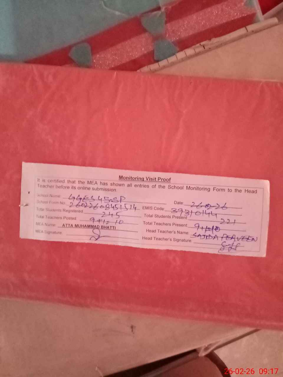 | Certified that this School was Inspected by the Undersigned MEA/DMO Today and the Information Stated Above is as Per Record. | |||||