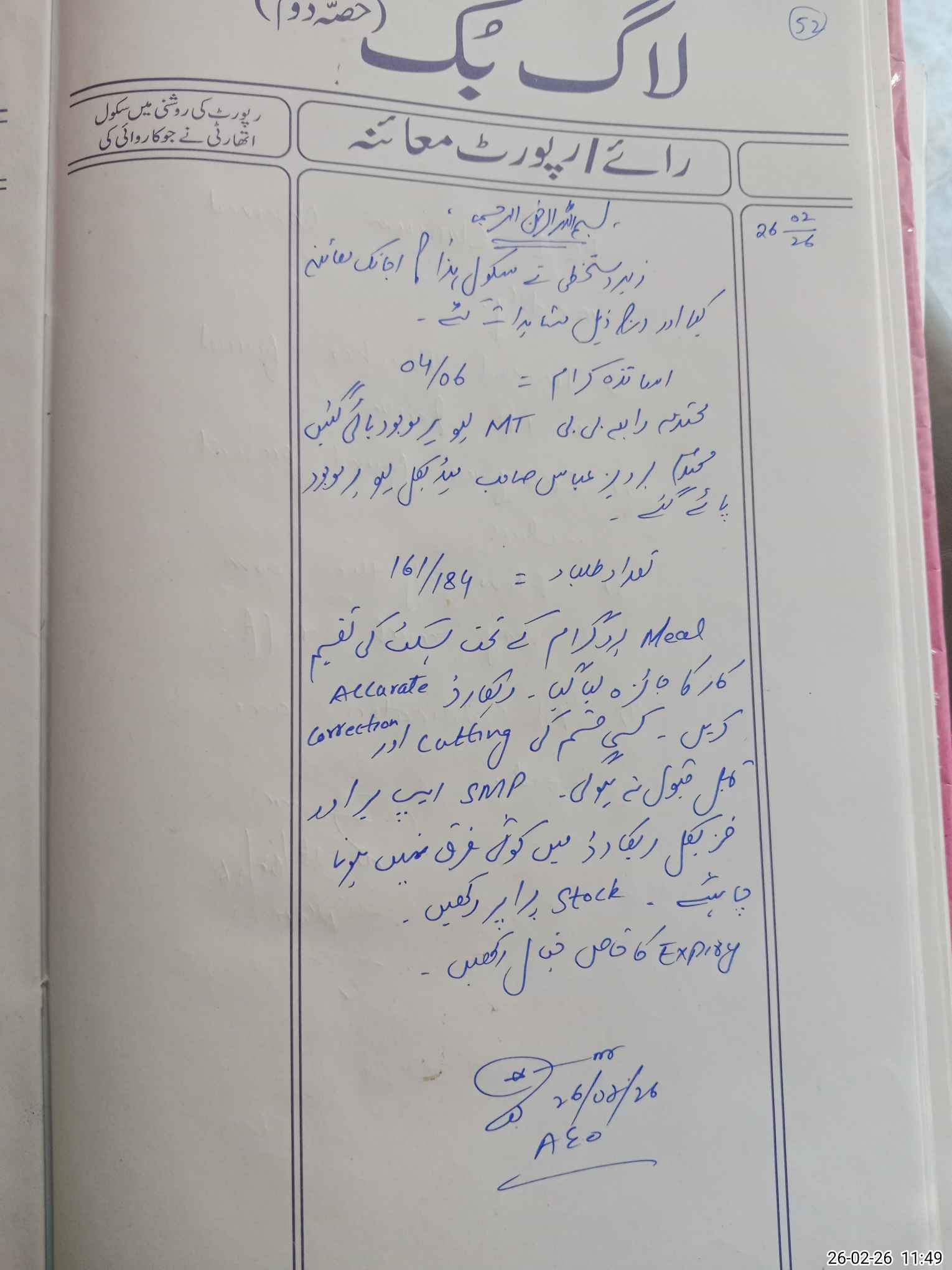 | Certified that this School was Inspected by the Undersigned MEA/DMO Today and the Information Stated Above is as Per Record. | |||||