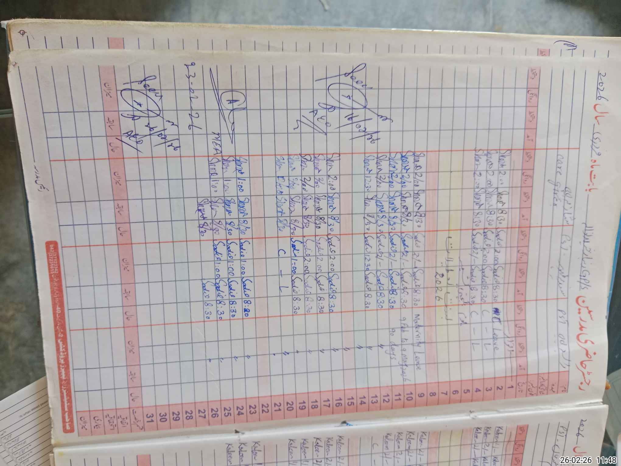 | Leave | Duty | Absent | Maternity | Medical | Ex- Pak |