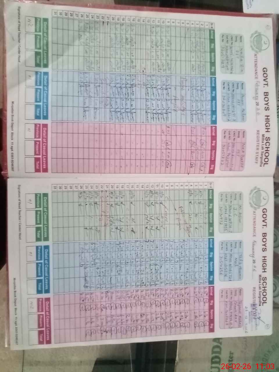| CNIC | Full Name | Designation | R/C | Absence During Last Calender Month |