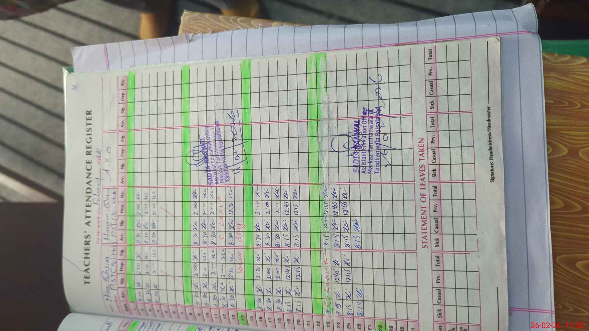 | Name: SA**** BE**** Designation: (School Headmaster's/Headmistress's) EST (GENERAL ) Phone/Cell Number: 03**** |