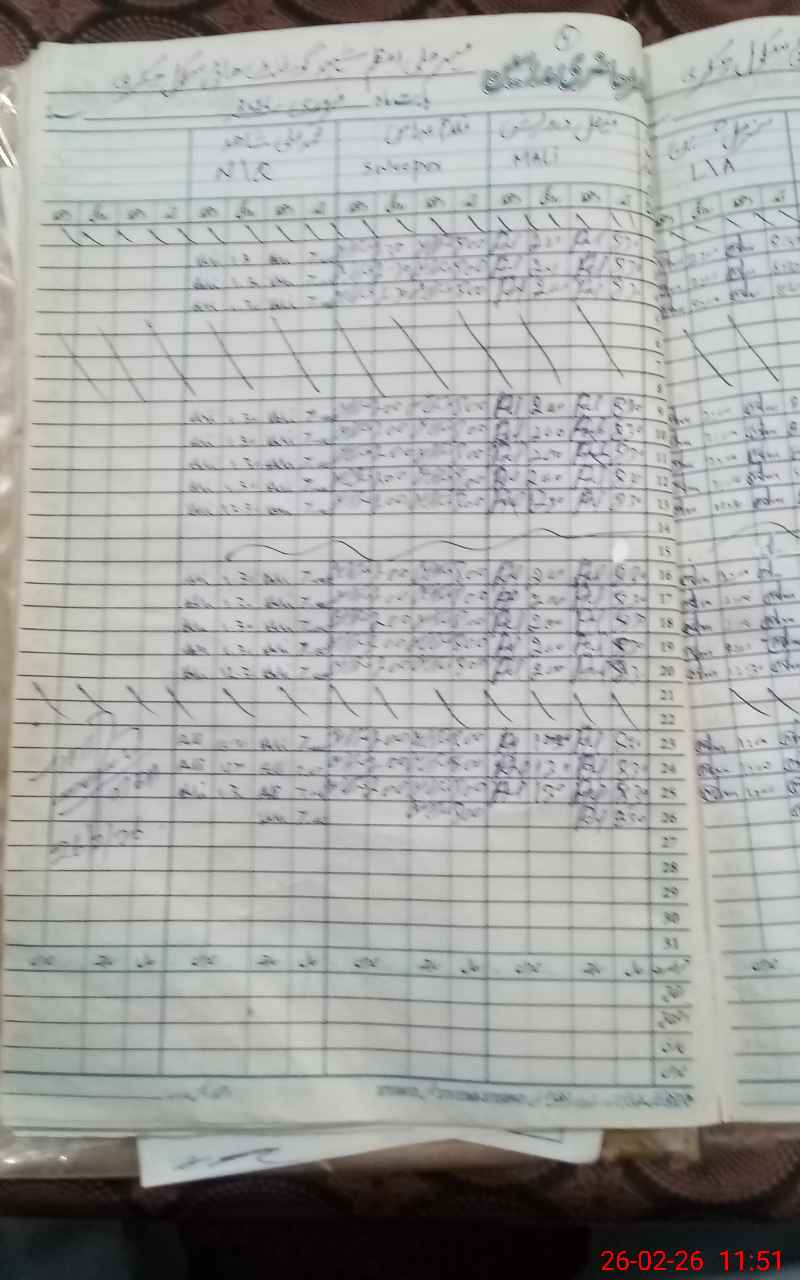 | CNIC | Full Name | Designation | R/C | Absence During Last Calender Month |