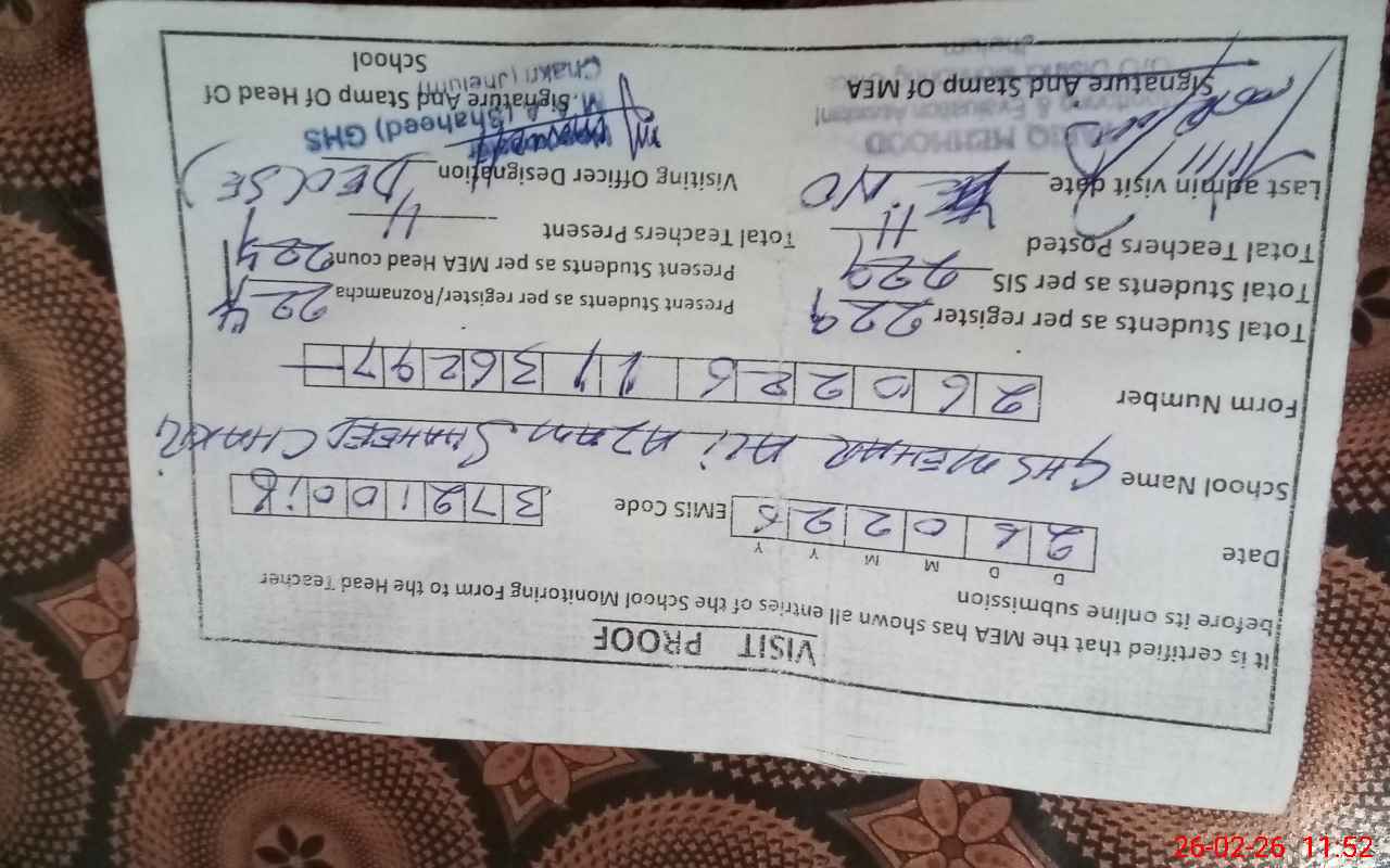 | EMIS Code: 37210016 | Name of School: GHS MEHR ALI AZAM SHAHEED (CHAKRI) | |||