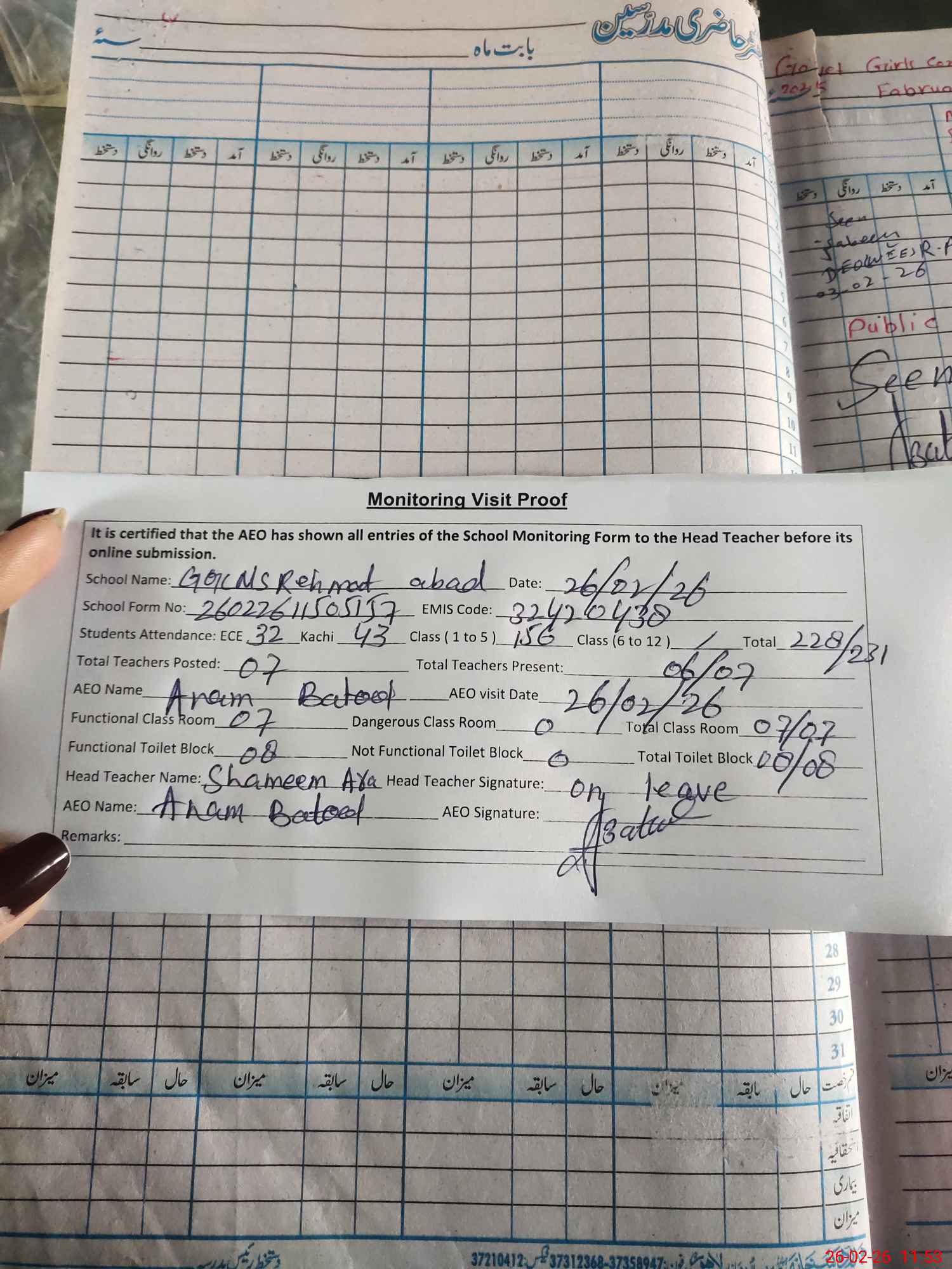 | EMIS Code: 32420438 | Name of School: GGCMS REHMAT ABAD | |||