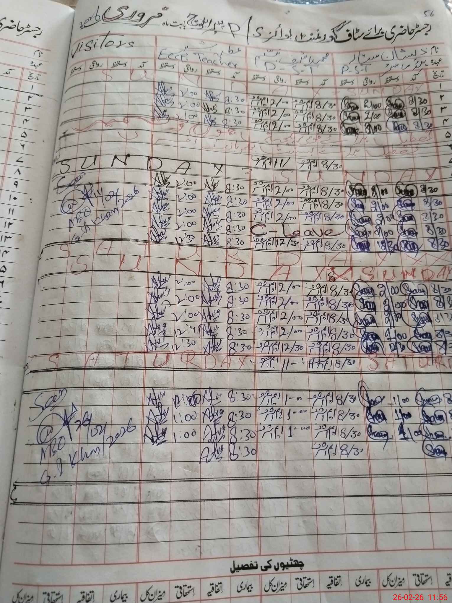 | Leave | Duty | Absent | Maternity | Medical | Ex- Pak |